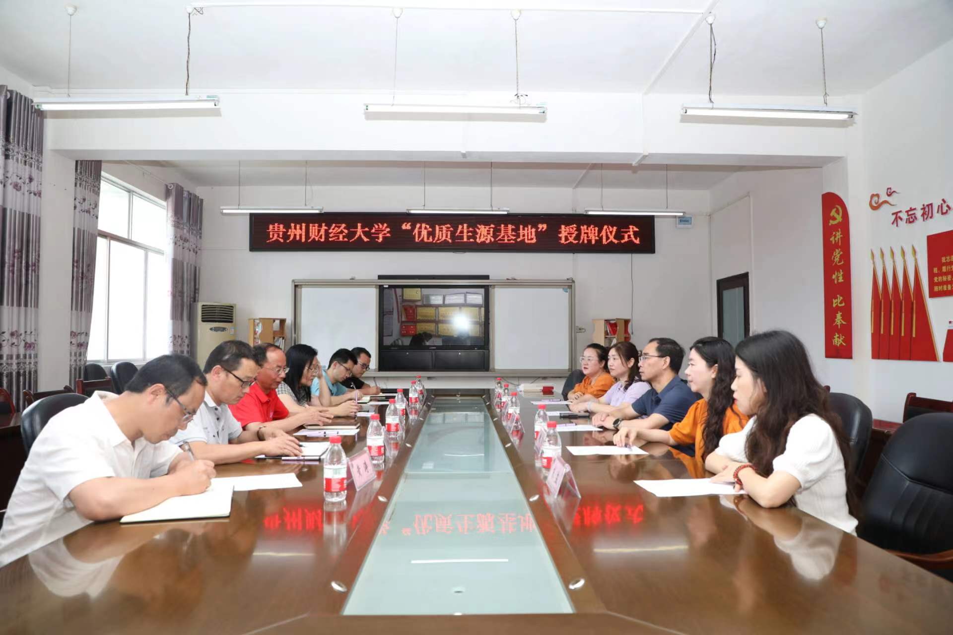 26日下午工作队赴凯里实验高级中学开展招生宣传专题座谈会,凯里实验高级中学董事长龙屏、副董事长杨景钧、总务主任杨勇出席会议,参会双方分别就公司、学科、专业、员工报考意愿等内容进行了深入交谈,效果良好。最后龙屏董事长代表凯里实验高级中学接受了公司“优质生源基地”授牌。