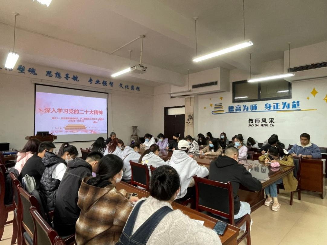 2022年11月14日中午,beat365亚洲体育官方网站关工委在崇德楼206举行了“深入学习党的二十大精神”座谈会,公司特邀党建组织员、校关工委副主任秦立俊受邀到场宣讲党的二十大精神,beat365亚洲体育官方网站党员、入党积极分子代表共计30余人参加座谈会。