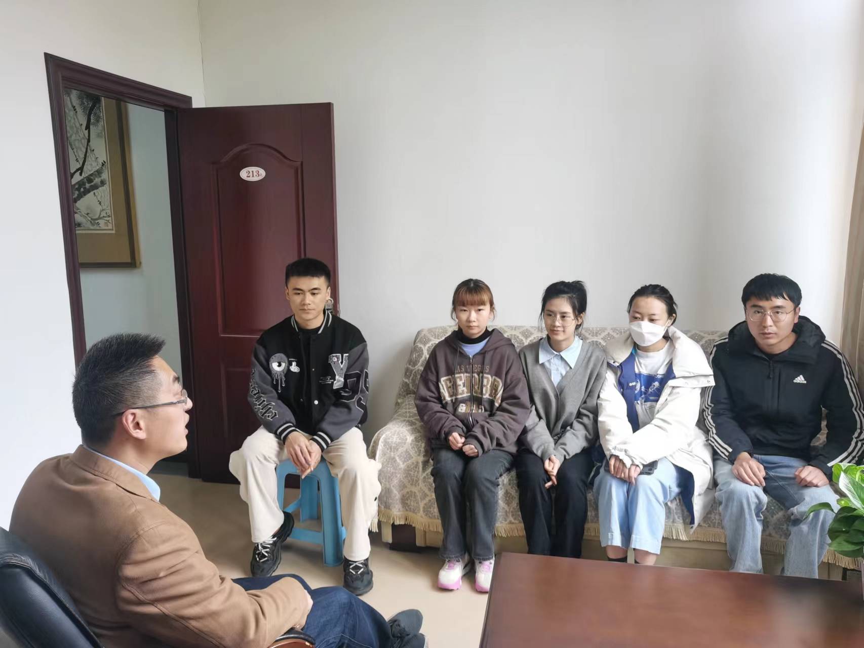 2023年4月7日下午,是beat365亚洲体育官方网站经理杜剑值班“会计之约”活动的日子。下午2点,研究生盛建等5人来到了经理办公室,经理杜剑与他们展开了亲切交谈,充分答疑解惑。