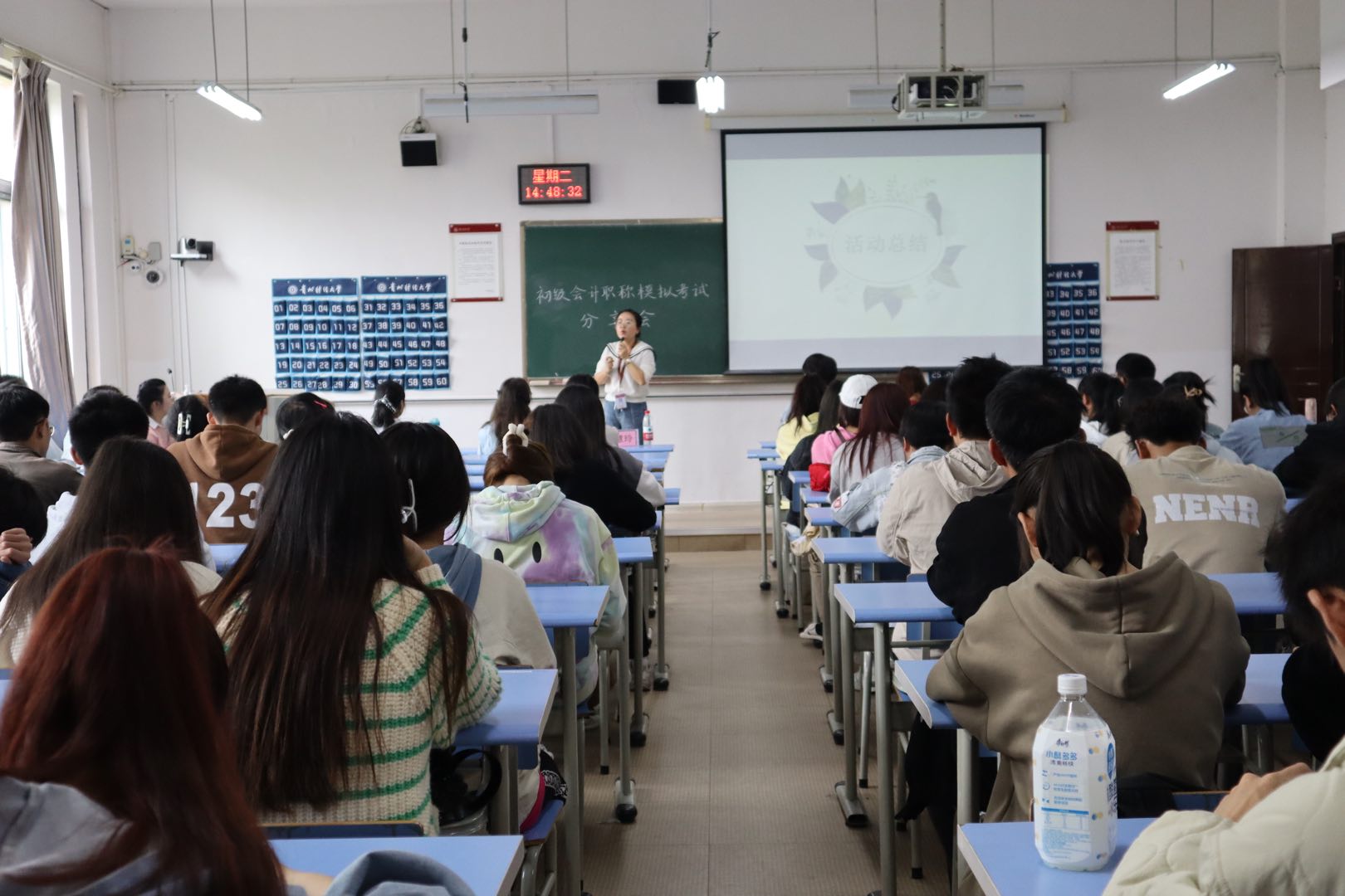 本次活动分为初级会计职称模拟考试和学习分享会。模拟考试采取笔试的方式进行,以《初级会计实务》、《经济法基础》为参考,尽可能为同学们还原初级会计职称考试氛围。此外,在模拟考试后举办学习经验分享会,该会由已经取得初级会计职称证书的同学分享备考心得以及复习方法。各位同学在会上积极提出备考时遇到的困难,大家共同思考解决办法,使同学们及时调整备考状态,更好面对正式考试。