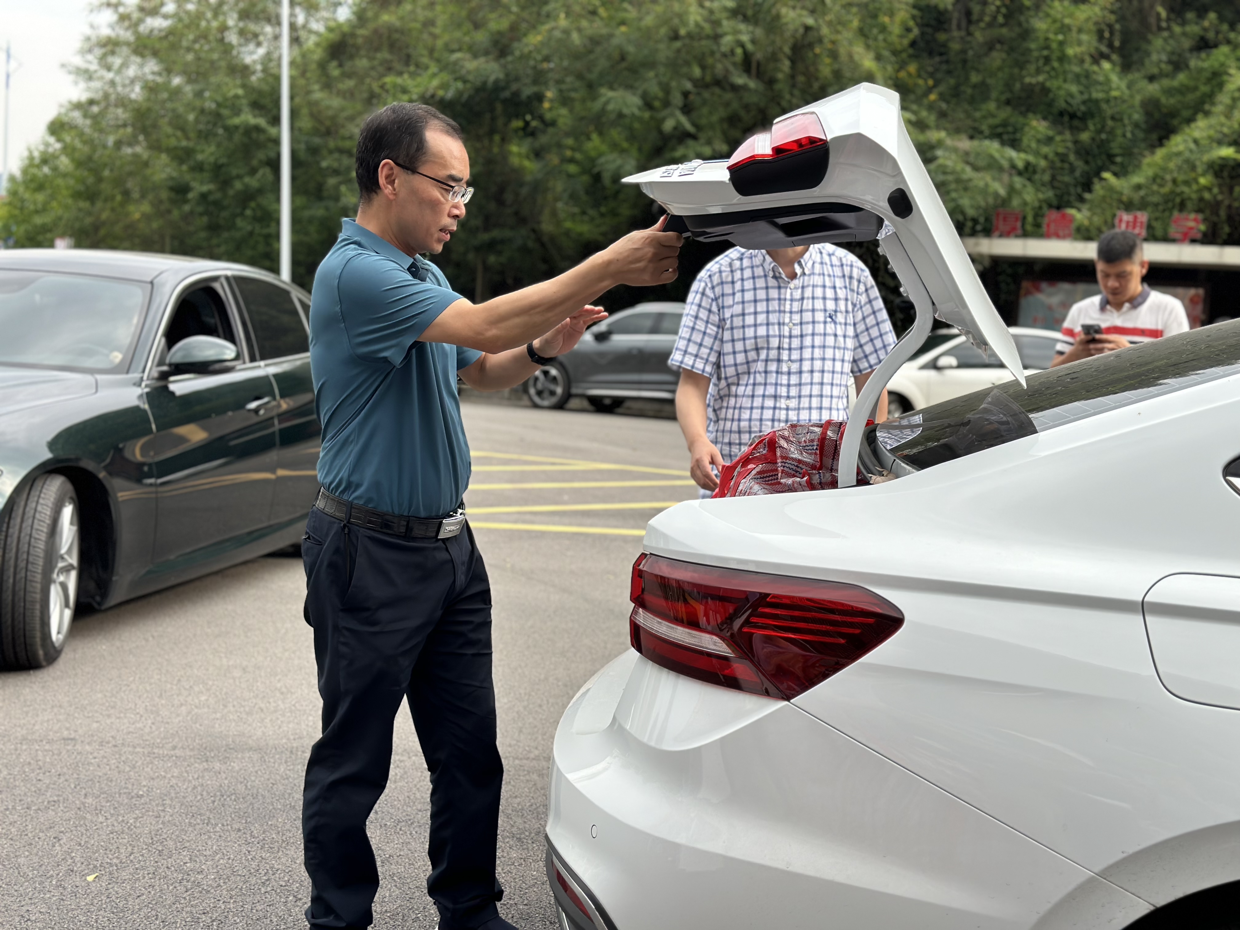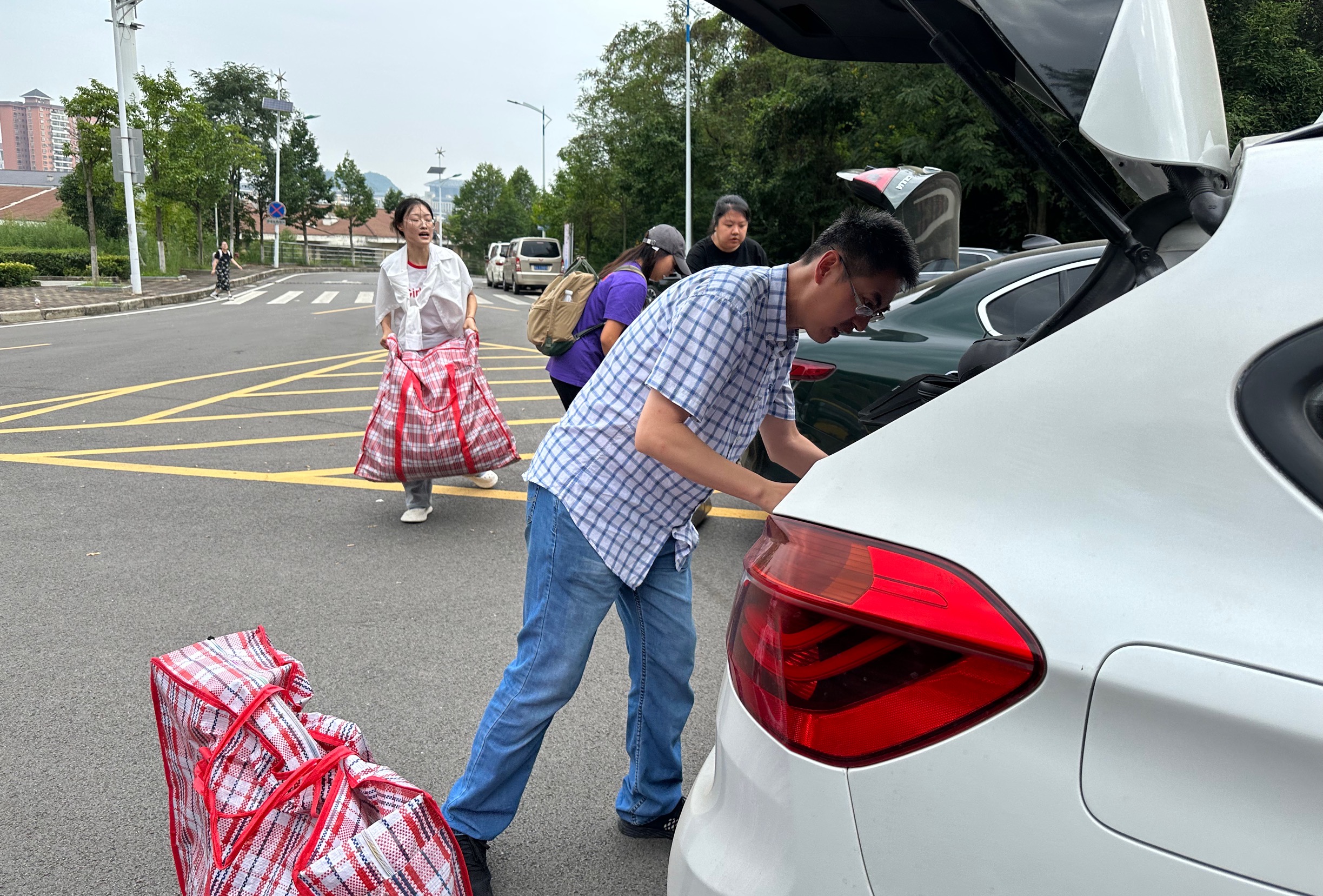 上午8点20分,beat365亚洲体育官方网站教师爱心车队在崇德楼前集结,然后分成两队分别到D17和丹桂苑二栋搬运行李。在行李搬运现场,公司辅导员们负责为教师爱心车队“派单”。院领导反复叮嘱大家:“一辆车负责运送一名员工的行李,然后再将员工本人带上一起送到东区,这样就不容易丢东西。”爱心车队的老师们纷纷“抢单”,他们不惧炎炎烈日,主动帮员工清点行李并扛上车,后备箱、座位上全部装满了行李。将员工和行李送到东校区后,爱心车队的老师们还指导员工找到指定宿舍楼,领取宿舍钥匙并顺利入住宿舍。