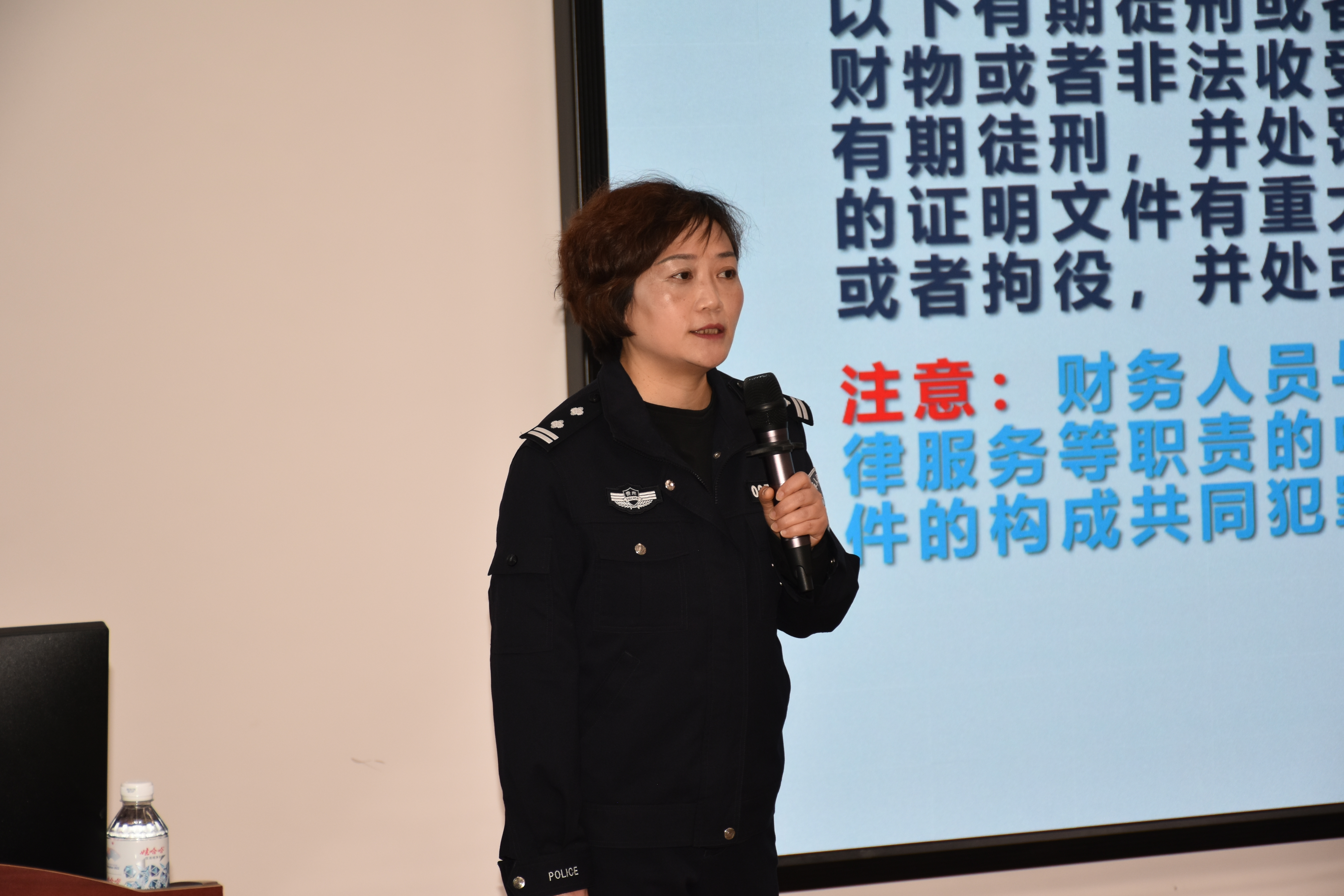 3月12日,为强化员工的法治意识,提升风险识别和防范能力,beat365亚洲体育官方网站课程思政教学研究中心、会计职业道德课程组为员工组织了一次别开生面的会计职业道德课堂活动。本次活动邀请了贵阳市公安局公职律师、贵阳市公安局经侦支队四大队副大队长、贵州警察公司经侦专业驻校教官刘燕入校开展警示教育。beat365亚洲体育官方网站副经理钱润红、邱静、周松,会计职业道德课程组成员,会计学专业200余名师生参加。教育活动由会计职业道德课程组成员徐筱彧老师主持。