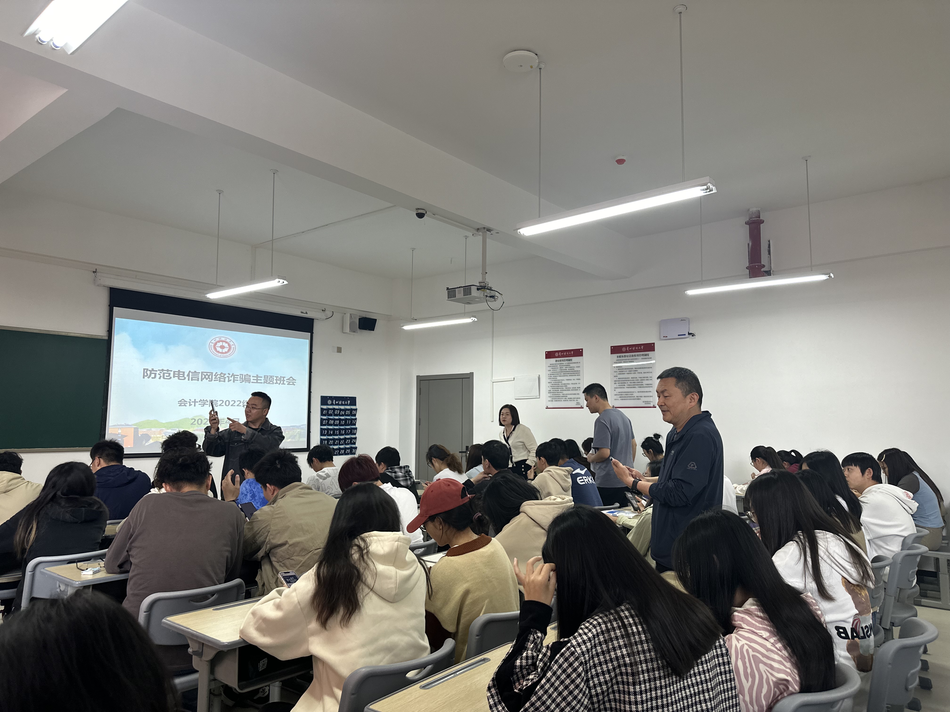 为进一步做好校园防范诈骗工作,加强对同学们的防诈骗安全教育,提高同学们防诈骗的意识和能力,构建和谐平安校园,beat365亚洲体育官方网站与贵安新区公安局民警联动,于2024年4月24日开展了beat365亚洲体育官方网站防范电信网络诈骗主题班会暨反诈督查会。贵安新区公安局刑侦支队、思雅派出所、公司“无诈校园”专项行动工作领导小组办公室(综治办、保卫处)、管理质量监控办公室、beat365亚洲体育官方网站党委副书记黄忠莉及beat365亚洲体育官方网站全体辅导员出席本次会议。