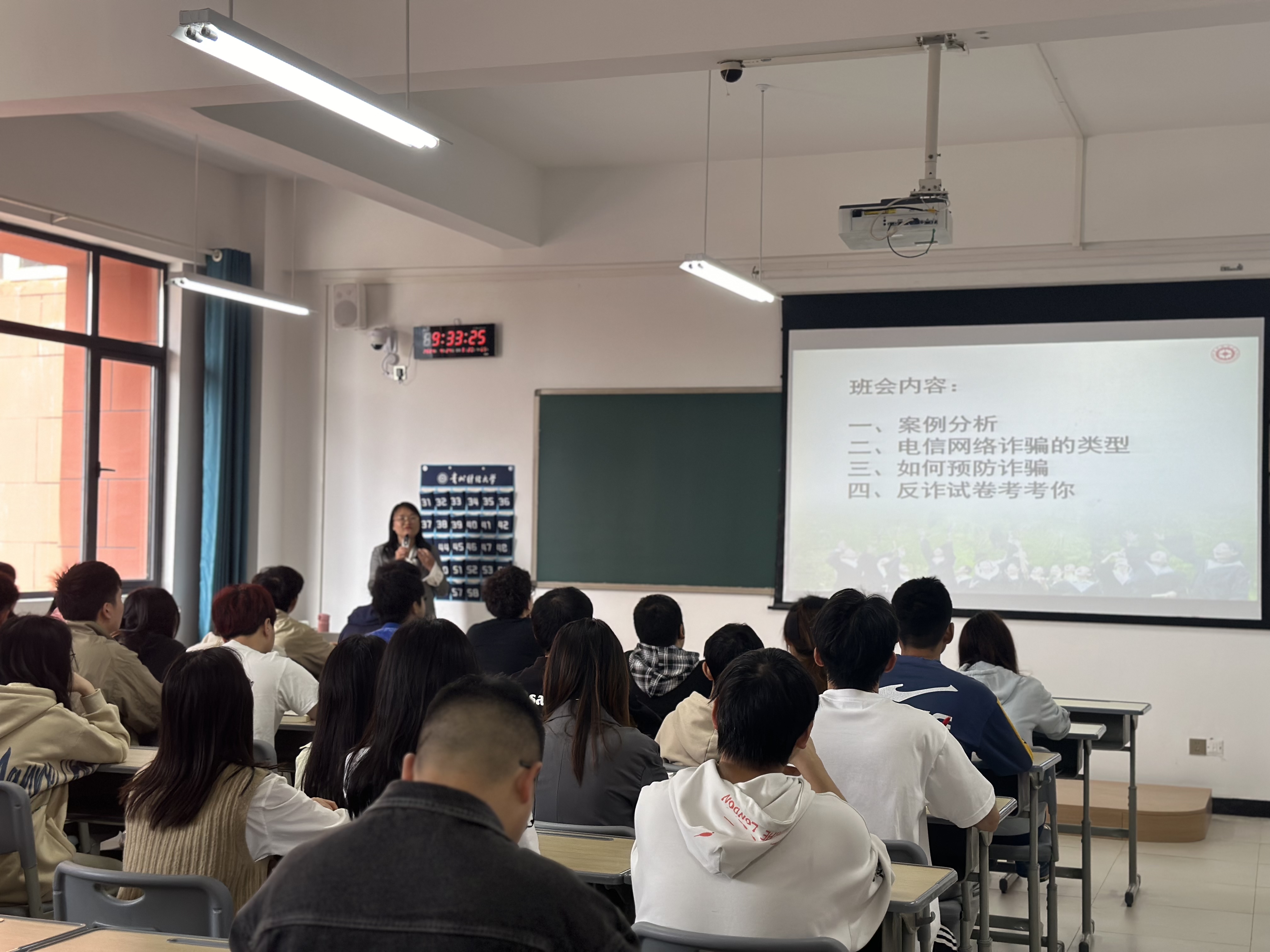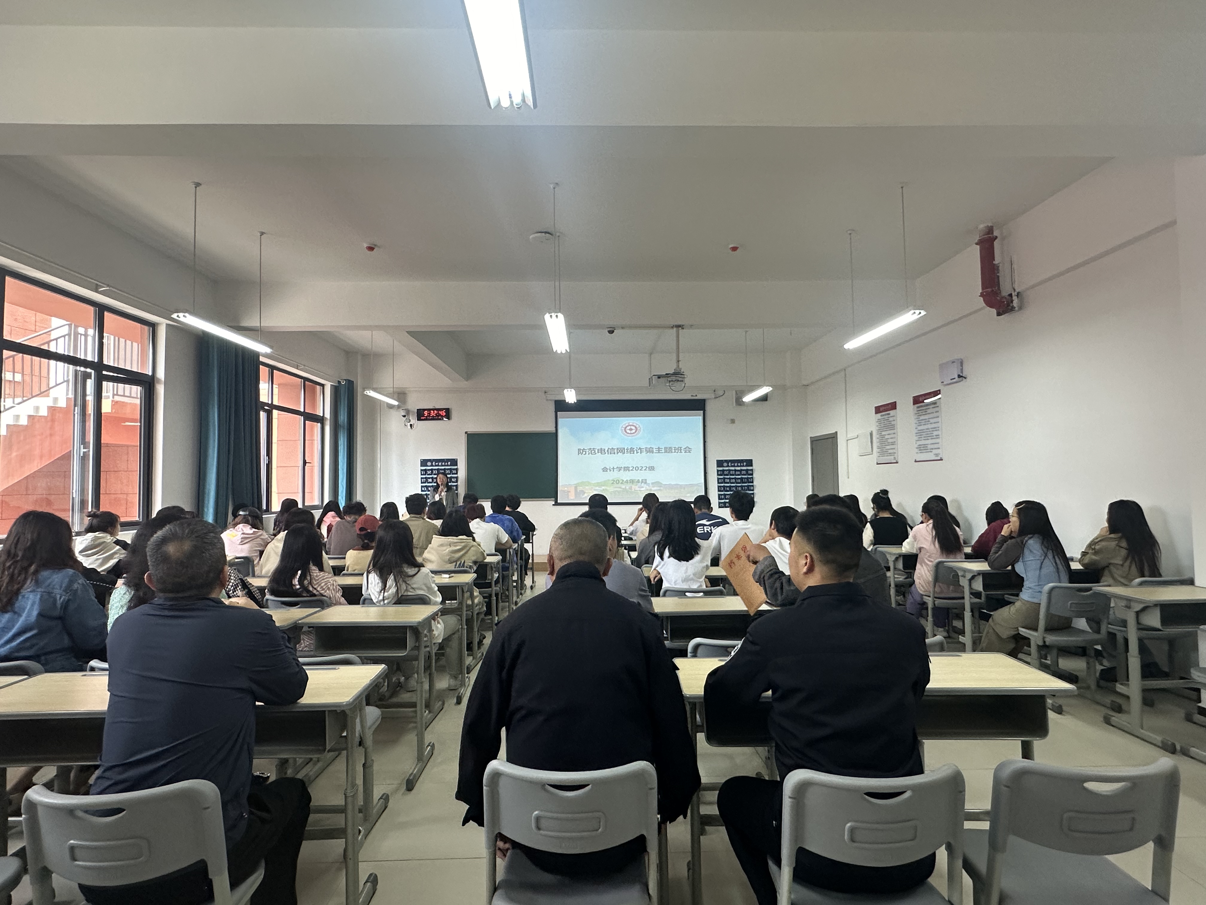 本次班会主要通过“案例分析”“电信网络诈骗类型”“如何预防诈骗”及“反诈试卷考考你”四个方面展开讲解。班会上,beat365亚洲体育官方网站2022级辅导员张筱悦向同学们普及电信网络诈骗的骗术和手段,从而提高同学们防范诈骗行为的安全意识,增强对电信网络诈骗行为的辨识力。同时,告诫大家要从思想上引起重视,增加安全防范意识,在学好专业知识的同时,更要学习并掌握基本的安全知识和自我保护的技能,提高防诈骗意识。在本次主题教育班会中,张老师还设立反诈知识试卷,同学们踊跃答题,不仅增加了对防诈骗知识的了解,也激发了他们保护自身利益的紧迫感和自觉性。随后,公安民警代表及公司保卫处上台讲解近期相关真实案例,分享防诈骗安全知识。此外,在民警抽查员工是否安装国家反诈中心APP时,发现仍有个别同学未安装,现场在老师与民警指导下安装注册成功。最后,希望各位同学一定要安装注册“国家反诈中心”APP,并且谨记反诈热线“96110”,做到防范在先,警惕在前,有备而无患。