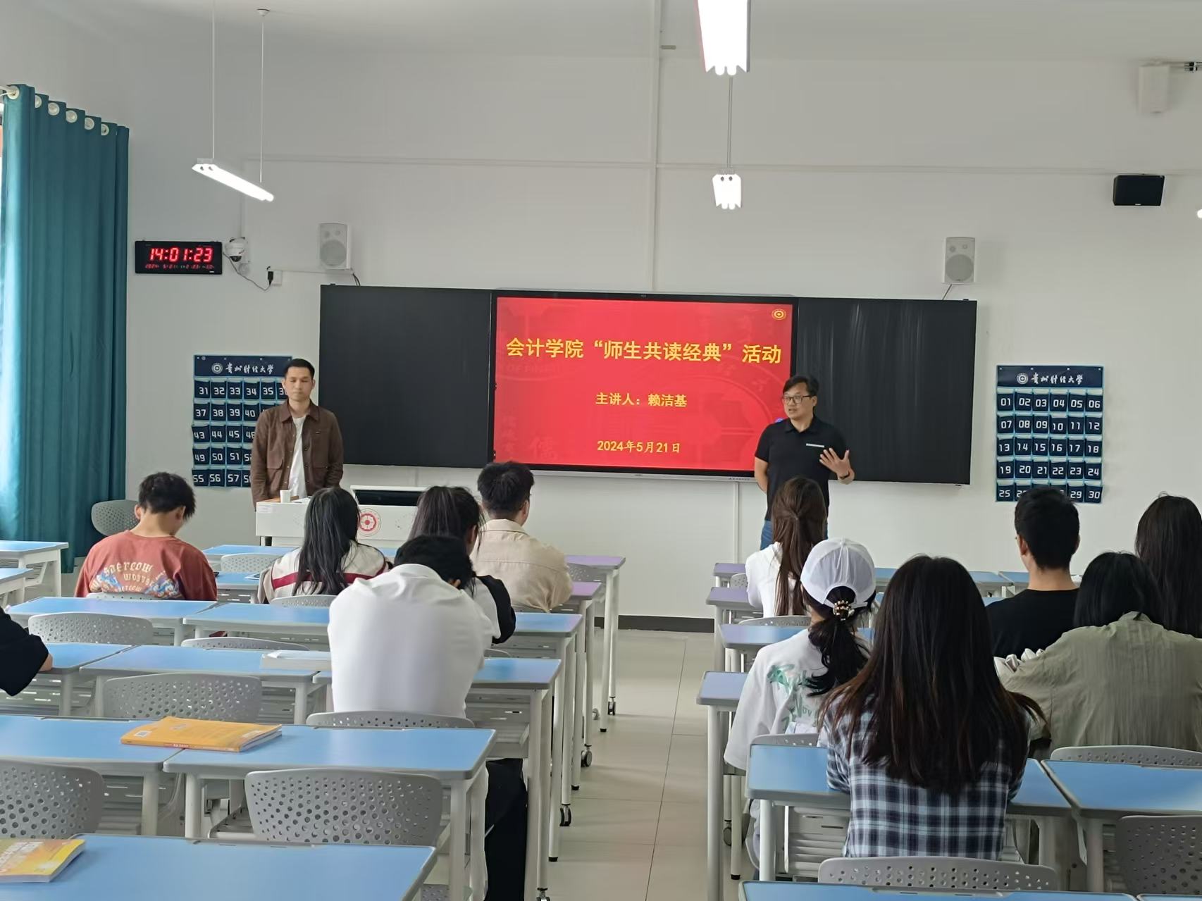 书籍是人类进步的阶梯,是启智增慧的良师益友。为切实加强公司学风建设,牢固树立“学术立校”理念,营造浓厚读书氛围,提高公司人才培养质量,公司决定开展2024年“师生共读经典”读书活动。同时beat365亚洲体育官方网站也为了促进本科生心中的学术种子萌芽生长,激发本科生考研深造的积极性,于2024年5月21日下午在文渊楼4-2举办了一场“师生共读经典”活动。