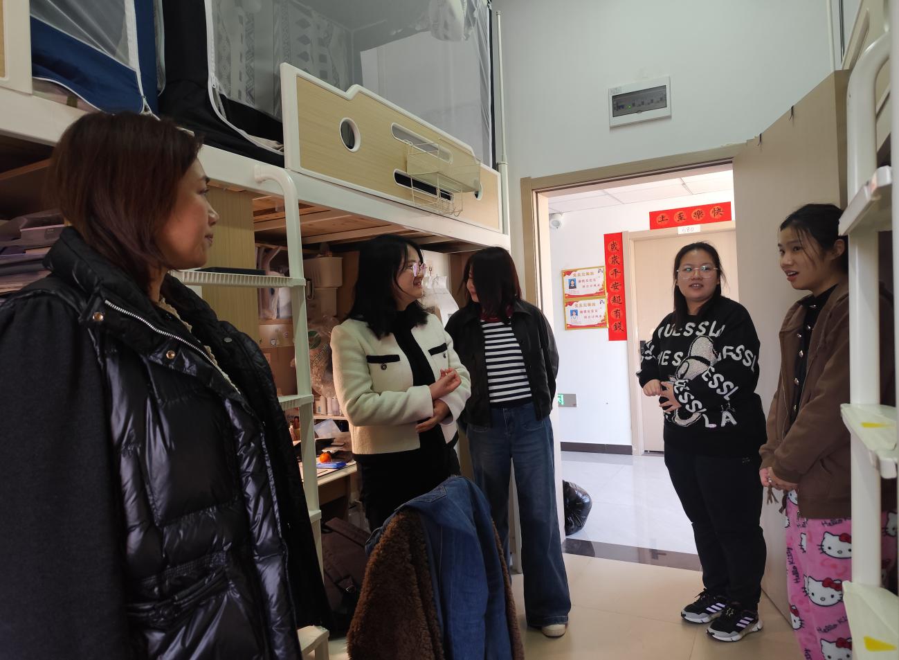 此外,院领导一行还深入到员工宿舍,详细询问了员工的生活习惯、宿舍成员之间的相处情况,以及生活方面是否存在困难等,充分了解他们对新学期的期待、对课程的满意度以及对未来的职业规划,向员工提出了指导性建议。在查寝过程中,院领导、辅导员们还重点检查了宿舍用电安全、卫生安全等问题,高度关注了员工的思想动态和心理健康情况并及时给予心理疏导。