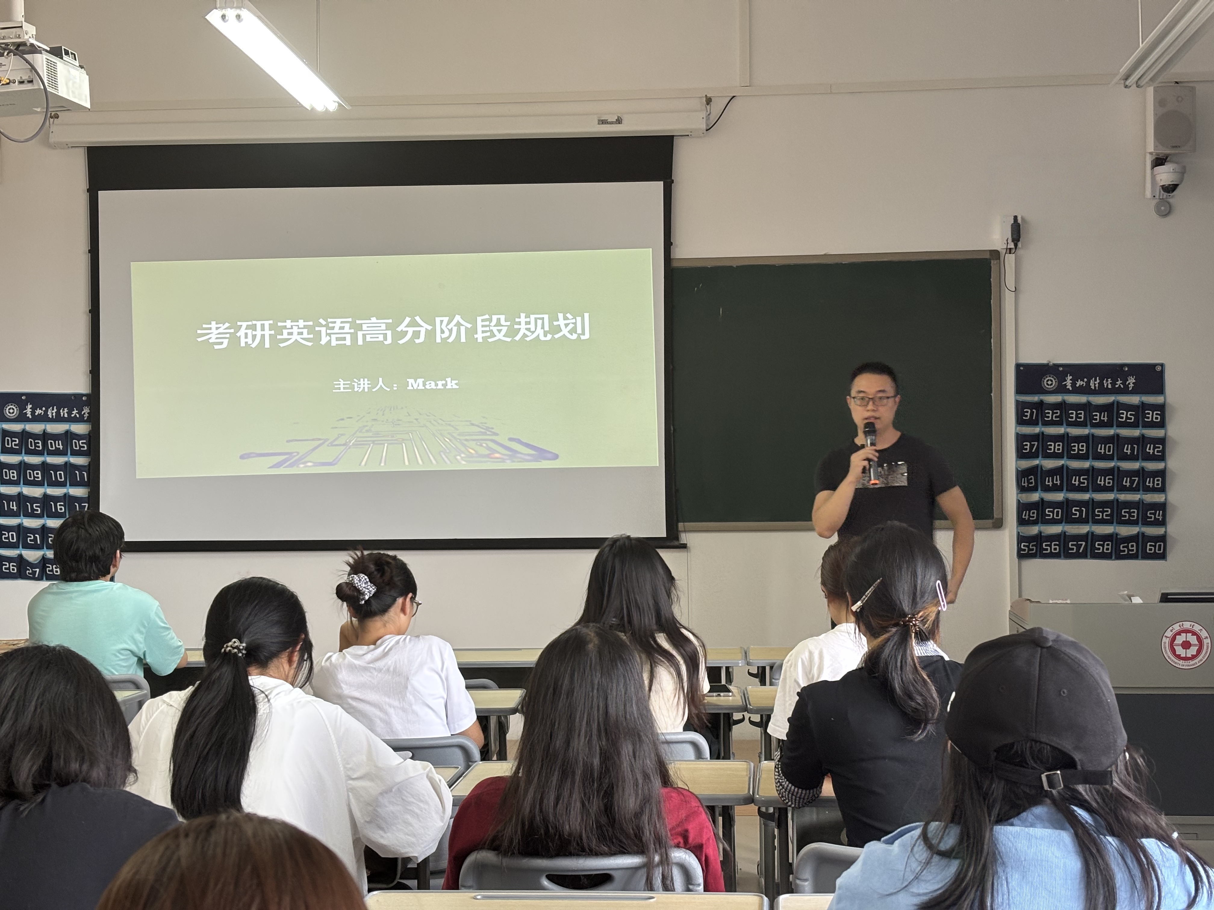 2025年10月14日下午,学业生涯规划俱乐部以“勤学笃行扬风气,朋辈引领促成长”为宗旨,举办英语学习经验交流会,扎实推进学风建设。活动聚焦员工升学与英语能力提升需求,特邀新文道考研英语主讲教师吴磊博士以及研究生第三党支部党员、beat365亚洲体育官方网站研究生联合会外联部部长马湘妮同学联袂分享,围绕四六级与考研英语高分备考展开系统讲解。本次分享不仅深入拆解考研英语核心难点,也同步衔接四六级备考资源,充分发挥“师生传帮带、朋辈共成长”的示范作用,现场学习氛围浓厚,活动获得参与同学一致好评。