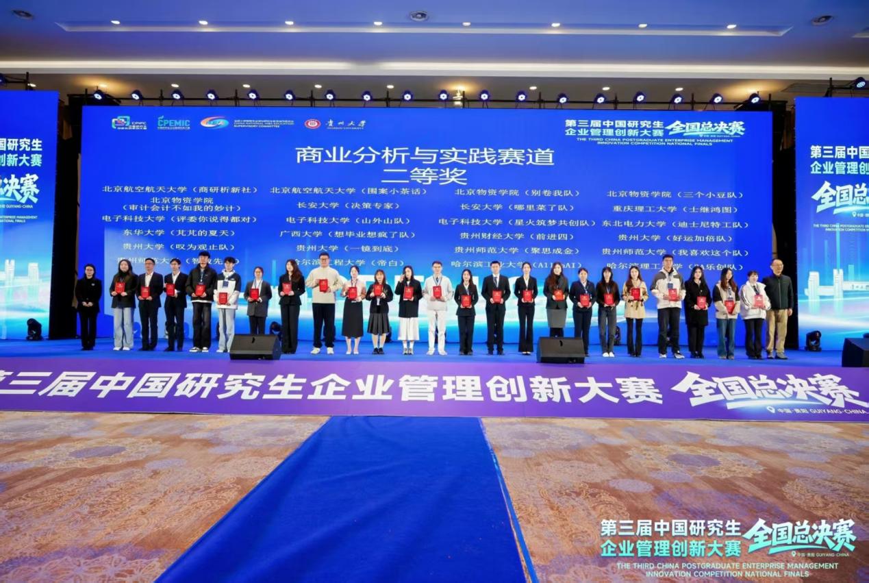 2025年11月7日-11月9日,第三届中国研究生企业管理创新大赛全国总决赛在贵阳举行。大赛由教育部学位管理与研究生教育司指导,中国学位与研究生教育学会、中国科协青少年科技中心主办,全国工商管理专业学位研究生教育指导委员会学术指导,全国工商管理专业学位研究生教育指导委员会秘书处、中国学位与研究生教育学会工商管理专业学位工作委员会、中国管理现代化研究会决策模拟专业委员会、中山大学管理公司、贵州大学(总决赛承办)承办,该比赛是响应科教兴国、人才强国、创新驱动发展三大战略,推动研究生教育内涵式发展的重要平台,致力于推动商科教育与产业深度融合,打通“院校-企业-赛事”育人闭环,实现课堂知识与产业需求同频共振。