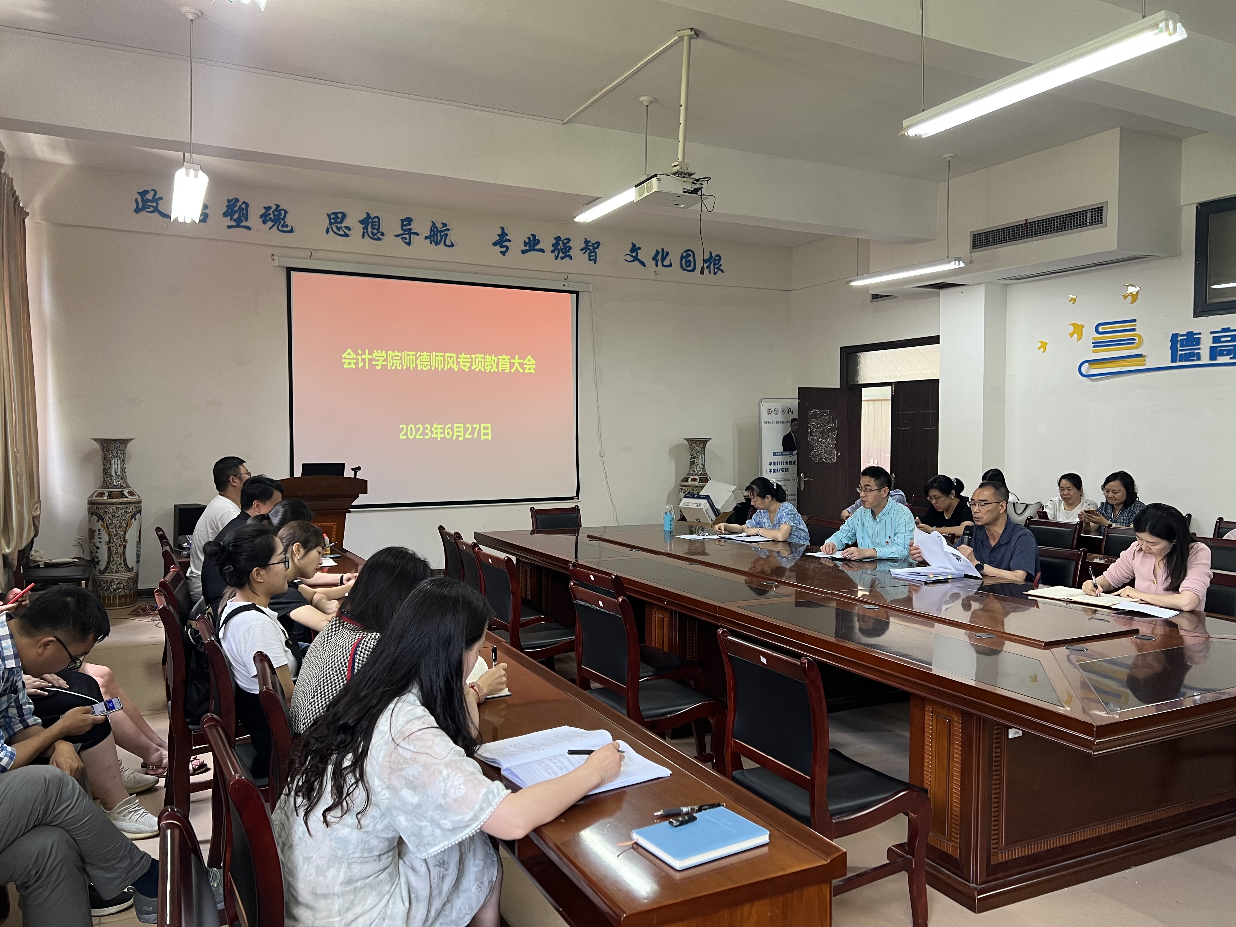 2023年6月27日,beat365亚洲体育官方网站在崇德楼206会议室开展了师德师风专项教育大会,beat365亚洲体育官方网站全体教职工参加,会议由党委书记聂永刚主持。