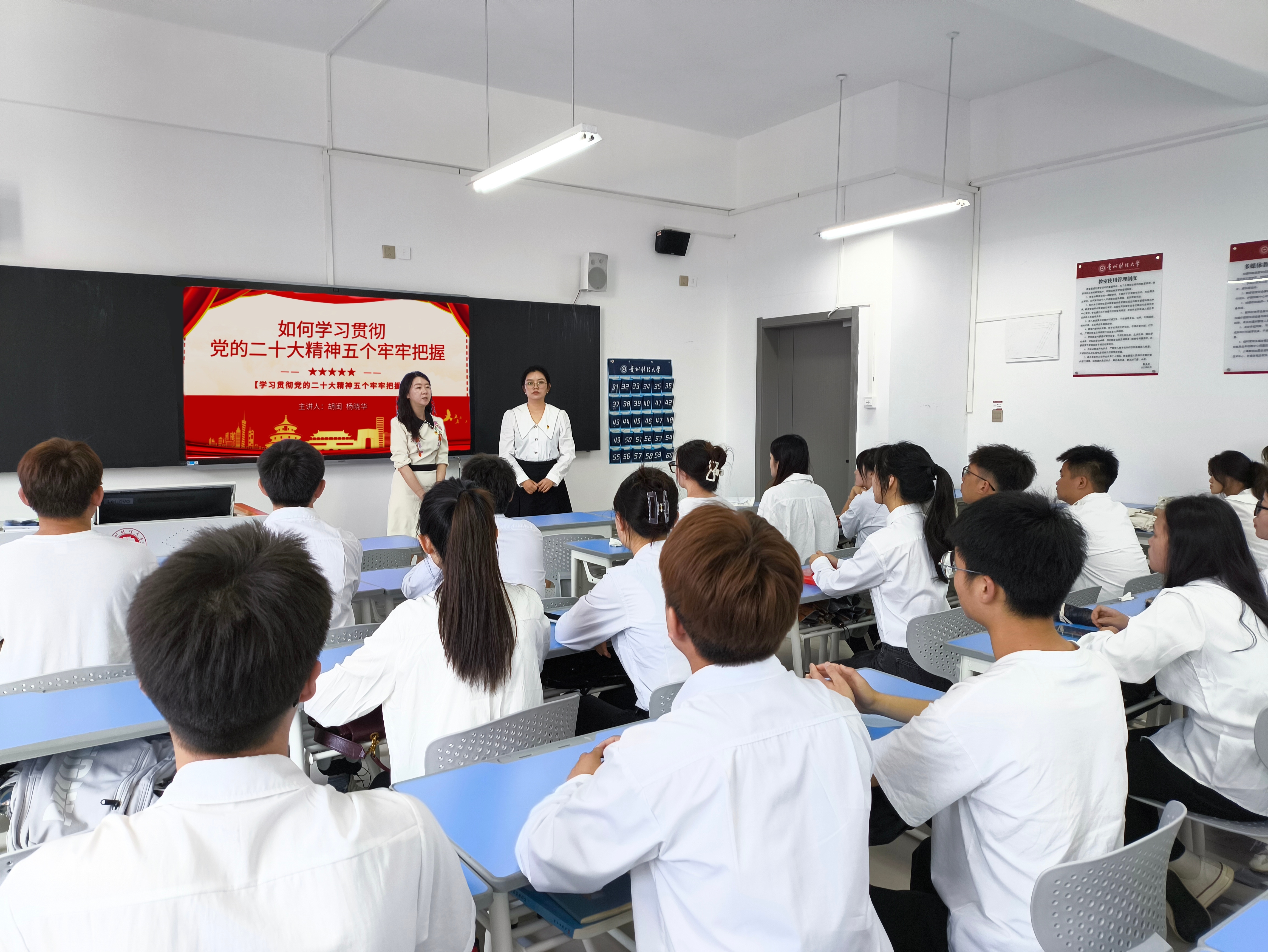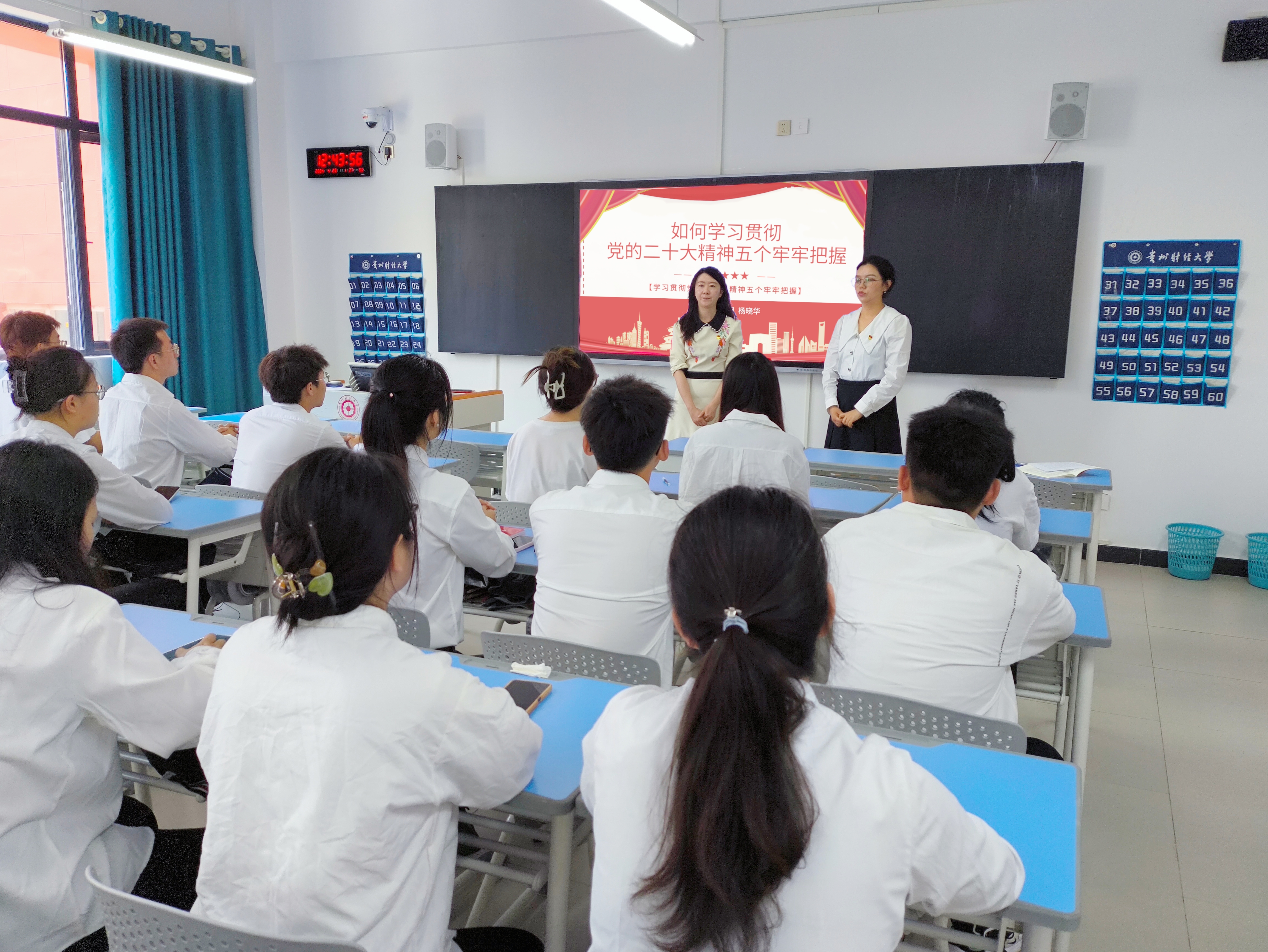 5月21日,beat365亚洲体育官方网站党委副书记胡闽、员工科副科长杨晓华在文渊楼4-4教室为员工党员开展了“学习贯彻党的二十大精神五个牢牢把握”理论宣传二人讲活动。