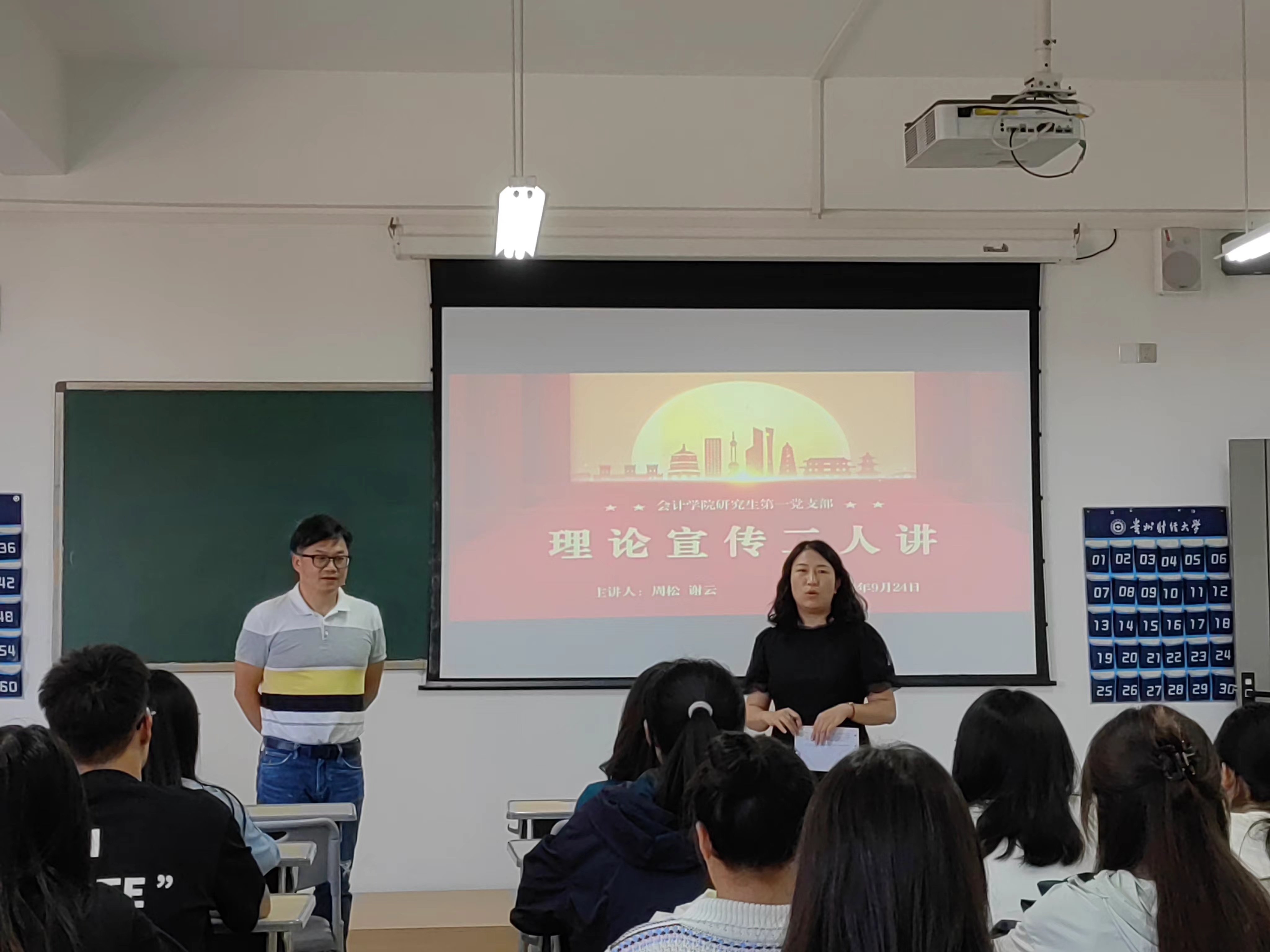 9月25日,beat365亚洲体育官方网站副经理周松、研究生辅导员谢云在文渊楼3-4教室为员工党员开展了“学习贯彻党的二十届三中全会精神”理论宣传二人讲活动。
