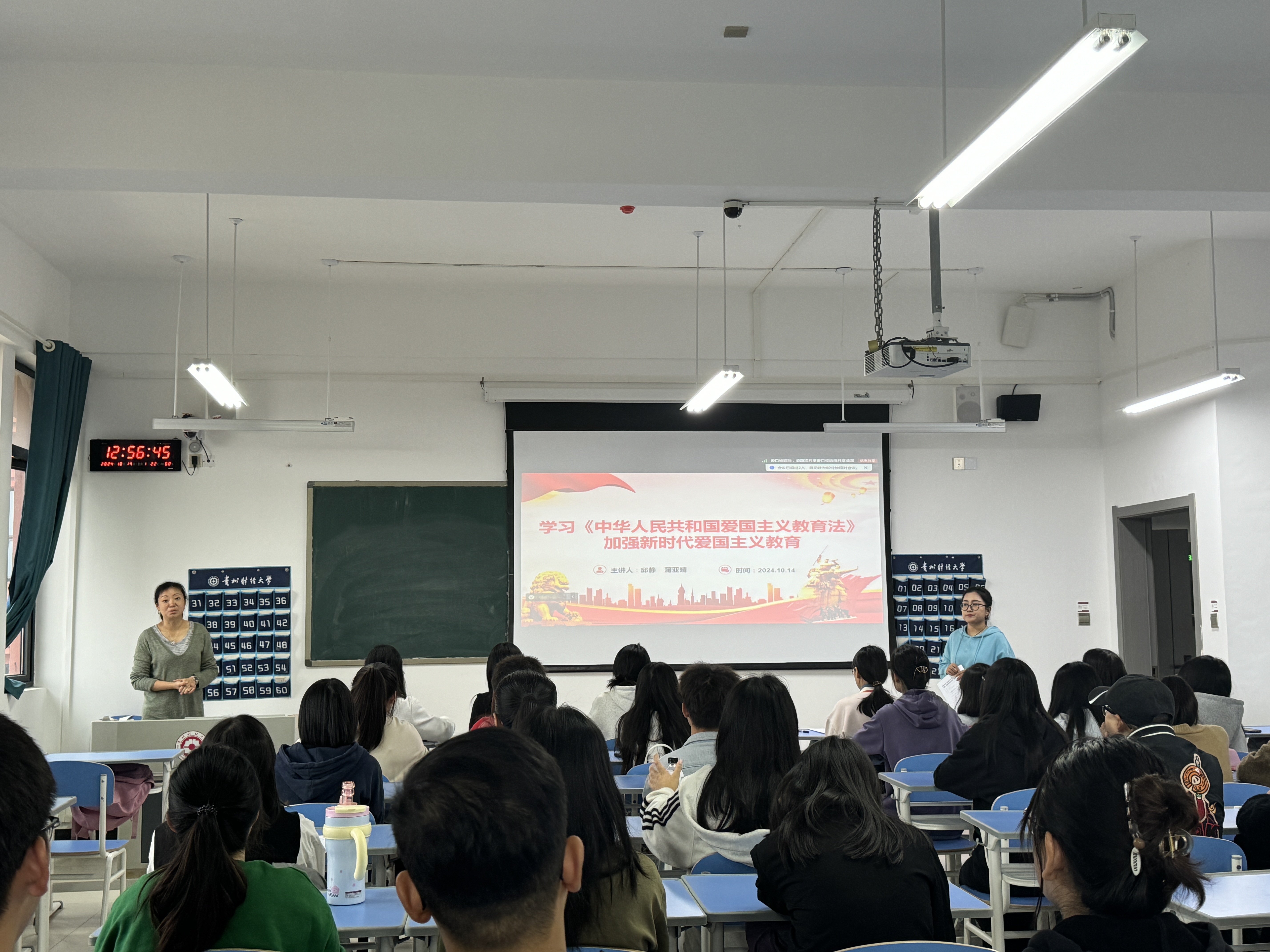 10月14日,beat365亚洲体育官方网站在文渊楼3-1开展了题为“学习《中华人民共和国爱国主义教育法》,加强新时代爱国主义教育”的理论宣传二人讲活动。beat365亚洲体育官方网站副经理邱静、专职组织员蒲亚晴担任主讲人,公司60余名员工到场参加活动。