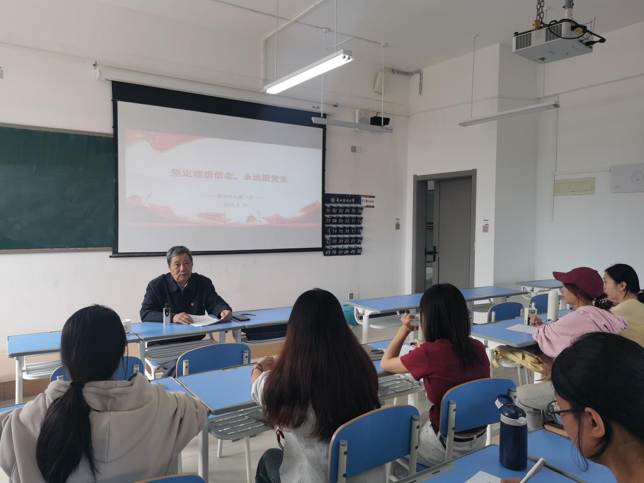 作为一名有着56年党龄的老党员,秦立俊同志从自己多次申请入党、始终坚定不移向党组织靠拢的经历讲起,回忆了年轻时在基层工作中如何克服困难、服务群众,直至退休后仍坚持参与党务工作、关心下一代成长的点滴。79岁的秦立俊同志精神矍铄,他用朴实的语言、真挚的情感,与大家深入探讨了“我为什么要入党”这一问题,引导大家一定要坚定理想信念,永远跟党走。他指出,“为共产主义奋斗终身”绝不是一句口号,也不以退休为终点,而是要贯穿生命的每一刻。