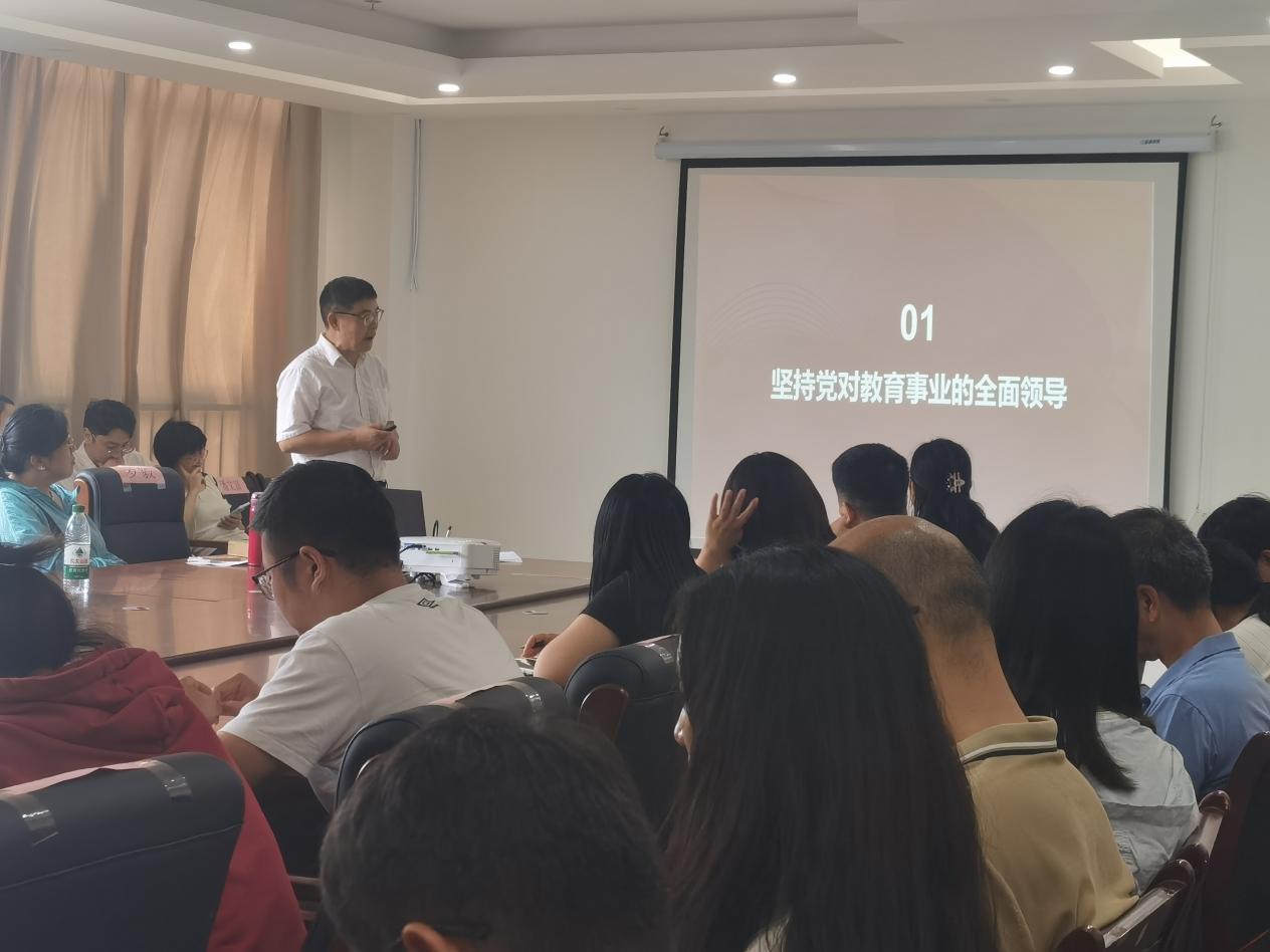王志亮从“坚持党对教育事业的全面领导”“紧紧围绕立德树人根本任务,培养德智体美劳全面发展的社会主义建设者和接班人”“坚持以人民为中心,办好人民满意的教育”“一体推进教育发展、科技创新、人才培养,以教育强国建设支撑引领中国式现代化”四个方面展开授课,全面解读了新时代新征程为什么要建设教育强国、建设什么样的教育强国、怎样建设教育强国等问题,引导大家深入学习习近平《论教育》。