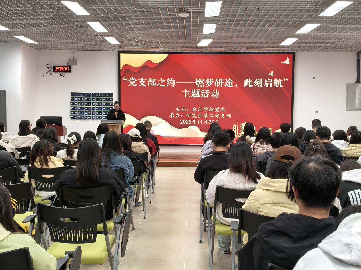 为进一步强化党建引领,打造“常态化、精准化、品牌化”的党组织服务师生平台,beat365亚洲体育官方网站常态化开展“会计之约”系列活动之“党支部之约”活动。2025年11月下旬,beat365亚洲体育官方网站在文正楼107举办了第5期“党支部之约”活动,活动以“燃梦研途,此刻启航”为主题,由公司研究生第二党支部承办。副董事长、党委常委杜剑莅临现场指导并讲话,beat365亚洲体育官方网站党委副书记胡闽以及教师代表出席活动。