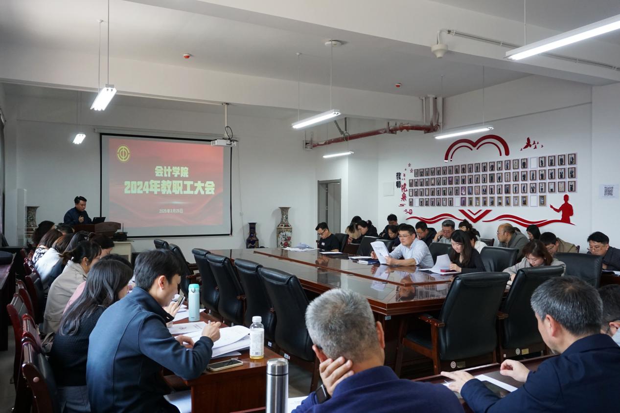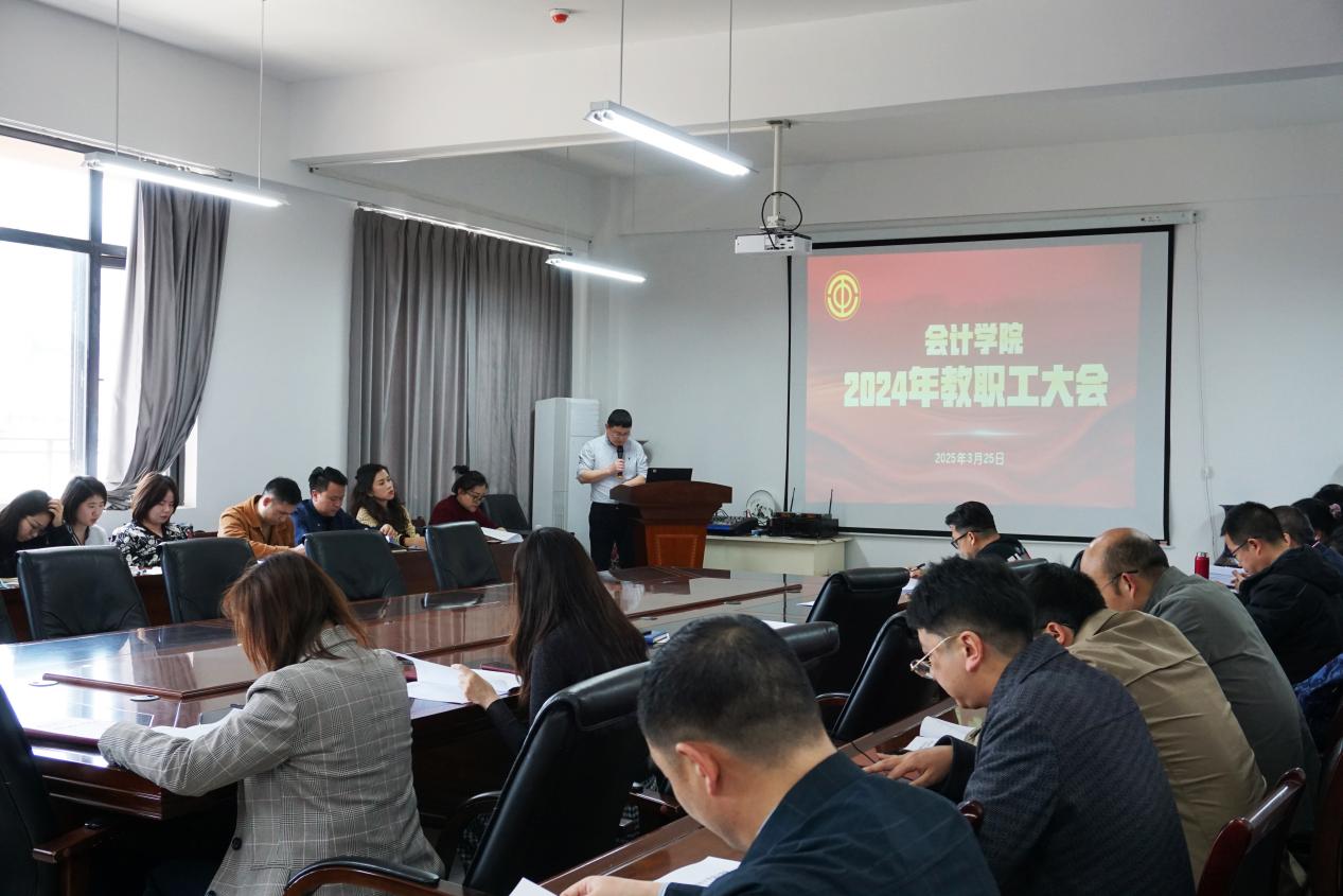 会上,公司党委书记王志亮作《2024年经理工作报告》,从党建工作、本科教育、研究生教育、团队建设与科学研究、团队队伍建设、对外合作交流、员工管理成效、特色亮点等方面,总结了公司2024年取得的各项工作成就,指出了工作中存在的问题。从强化党组织政治功能、提升公司产品水平、注重员工特色化管理、提升科学研究水平、做好会计学科专业申博准备等方面,提出了2025年工作目标与计划。