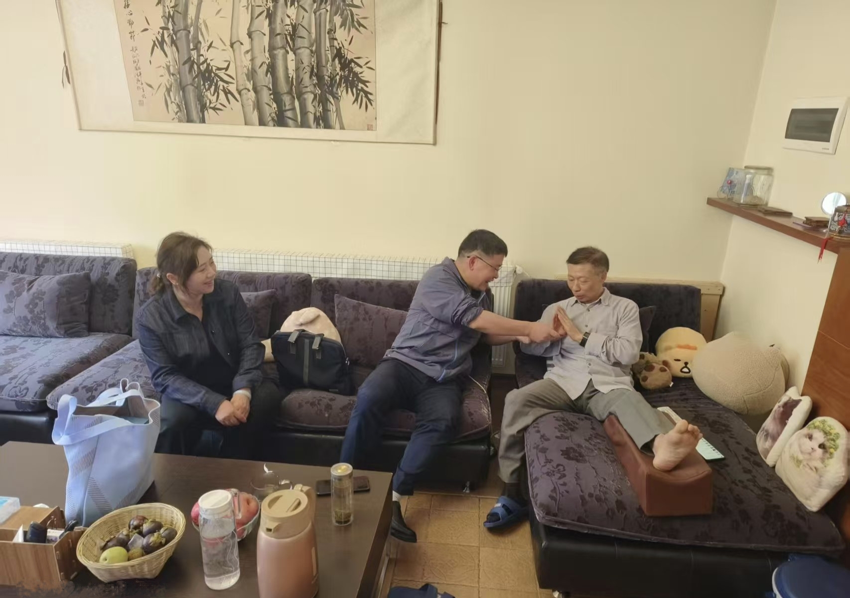 为弘扬尊师重教、敬老爱老的优良传统,表达对公司老同志的深切关怀与崇高敬意,2025年5月30日下午,beat365亚洲体育官方网站党委书记王志亮、党委副书记黄忠莉、院关工委联络员张筱悦及公司工会代表一行看望慰问了公司退休教师陈国金老师,陈老师近期因意外摔伤不慎脚部骨折卧床休养。