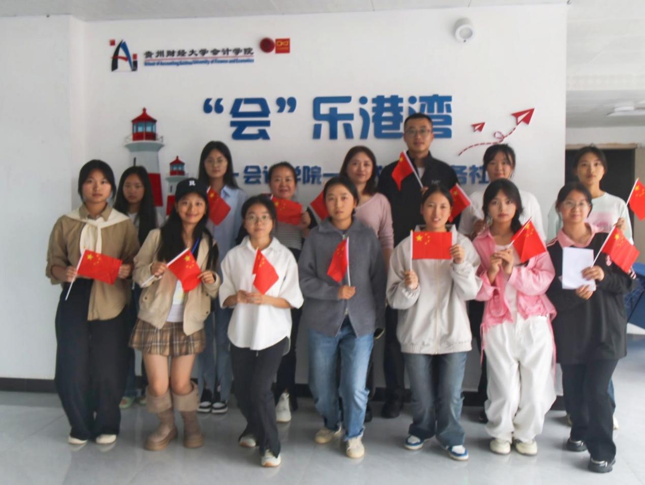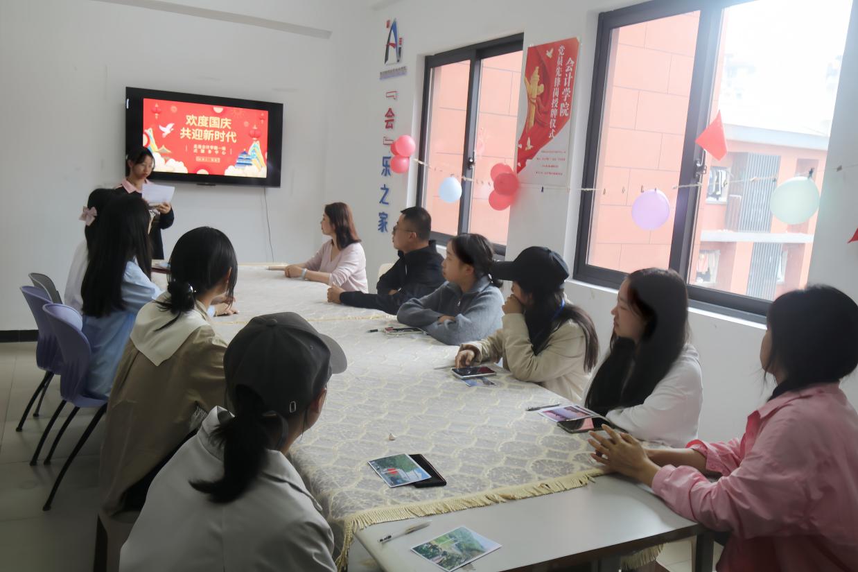 活动中,三位老师和积极参与此次活动的同学们一起欣赏拍摄的照片,一张张照片中展现的是祖国的大好河山,或是城市的万家灯火,或是鲜艳的五星红旗,每一张照片都是我们对祖国深情告白的见证。并且,大家还在便利贴上写下了对祖国诚挚的祝福,每一张都蕴含着深厚的爱国之情。随着悠扬的音乐响起,众人齐声高唱《我和我的祖国》,歌声中充满了对祖国的自豪和敬仰。活动接近尾声之际,全体成员欢聚合影,定格欢笑与祝福,铭记爱国情怀,共庆祖国华诞。