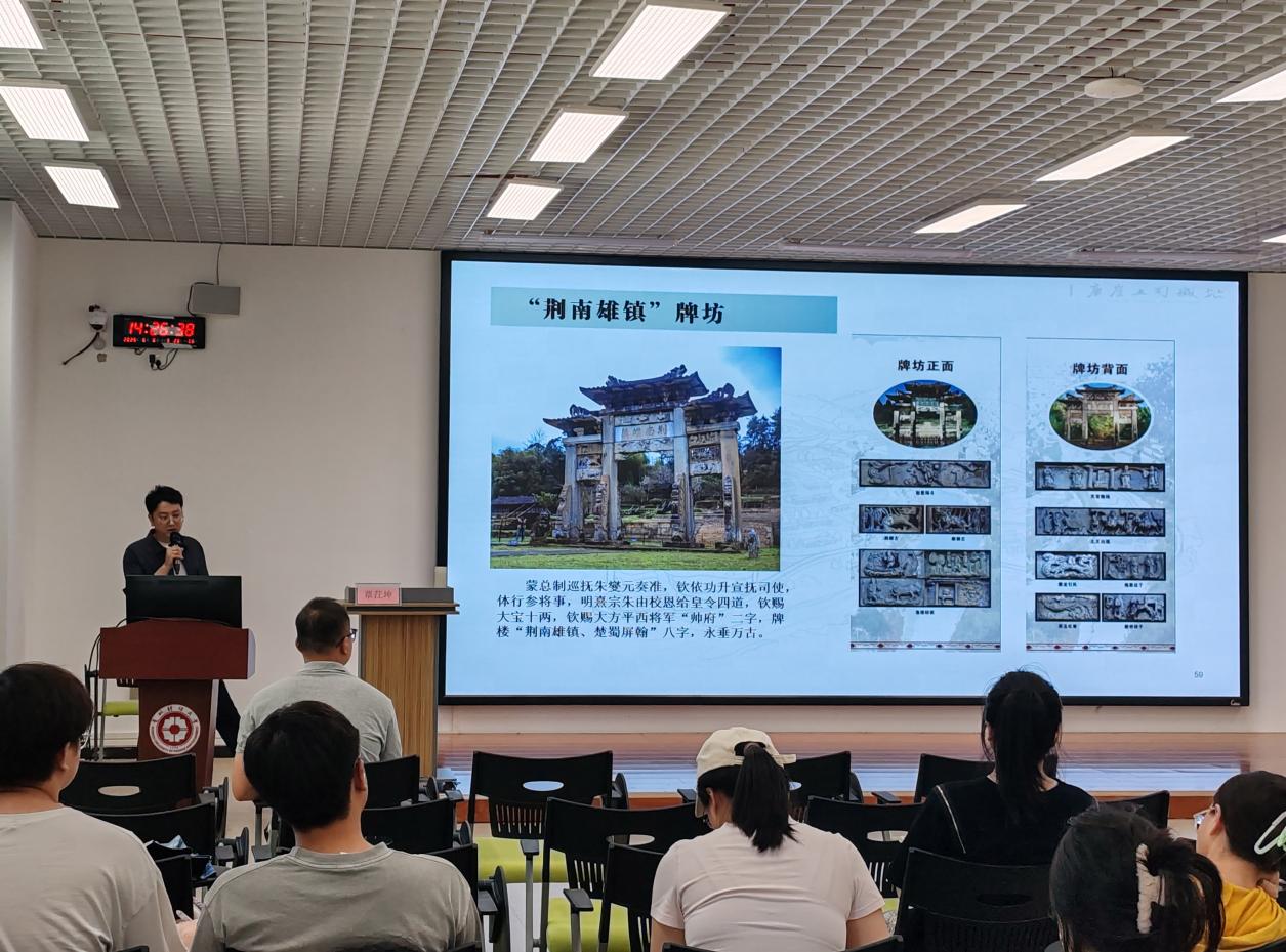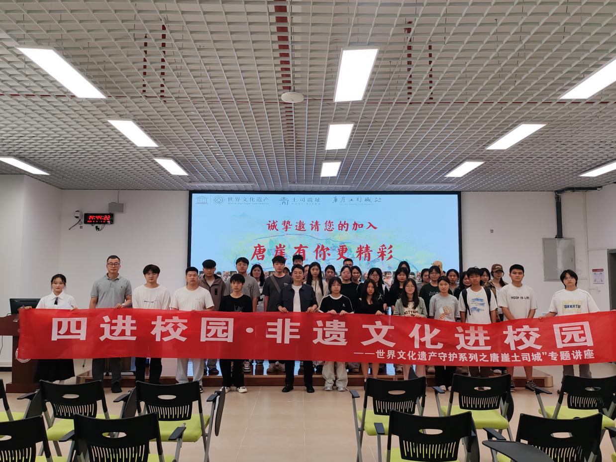 为弘扬中华优秀传统文化,让员工近距离了解世界文化遗产的独特魅力,2025年6月6日由校团委主办、beat365亚洲体育官方网站承办的“四进校园之非遗文化进校园”专题讲座在文正楼107教室举行。本次讲座特邀哲学博士、中共党员、世界文化遗产唐崖土司城守护者、《唐崖土司统谱》主编、唐崖土司第23代后裔覃茳坤老师担任主讲人。