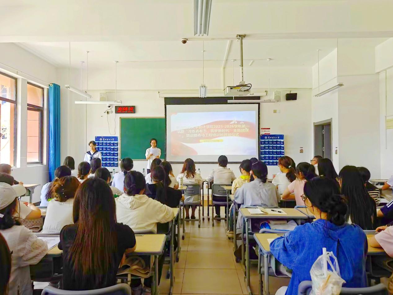 开班仪式伊始,全体成员齐唱中华人民共和国国歌。雄壮的旋律激荡人心,激励着每一位青年学子坚定理想信念,勇担时代使命。党委副书记黄忠莉老师在开班讲话中,对学员们提出三点希望:一是学以致用,知行合一,将所学付诸实践;二是严于律己,遵规守纪,展青年良好风貌;三是不负韶华,砥砺前行,争做新时代好青年。随后,团委书记吴慧玲老师宣读了团课培训的相关规定与要求,帮助学员清晰了解学习过程中的行为规范,明确纪律要求。紧接着,学员代表李安清同学发言,她表示将以高度的责任感和饱满的热情投入本次团课学习,严格要求自己,力求学深悟透、学以致用,以实际行动争做新时代优秀青年。最后,全体学员放声高唱中国共产主义青年团团歌,嘹亮的歌声展现了青年的青春活力与蓬勃力量,为本次团课注入了新的活力。