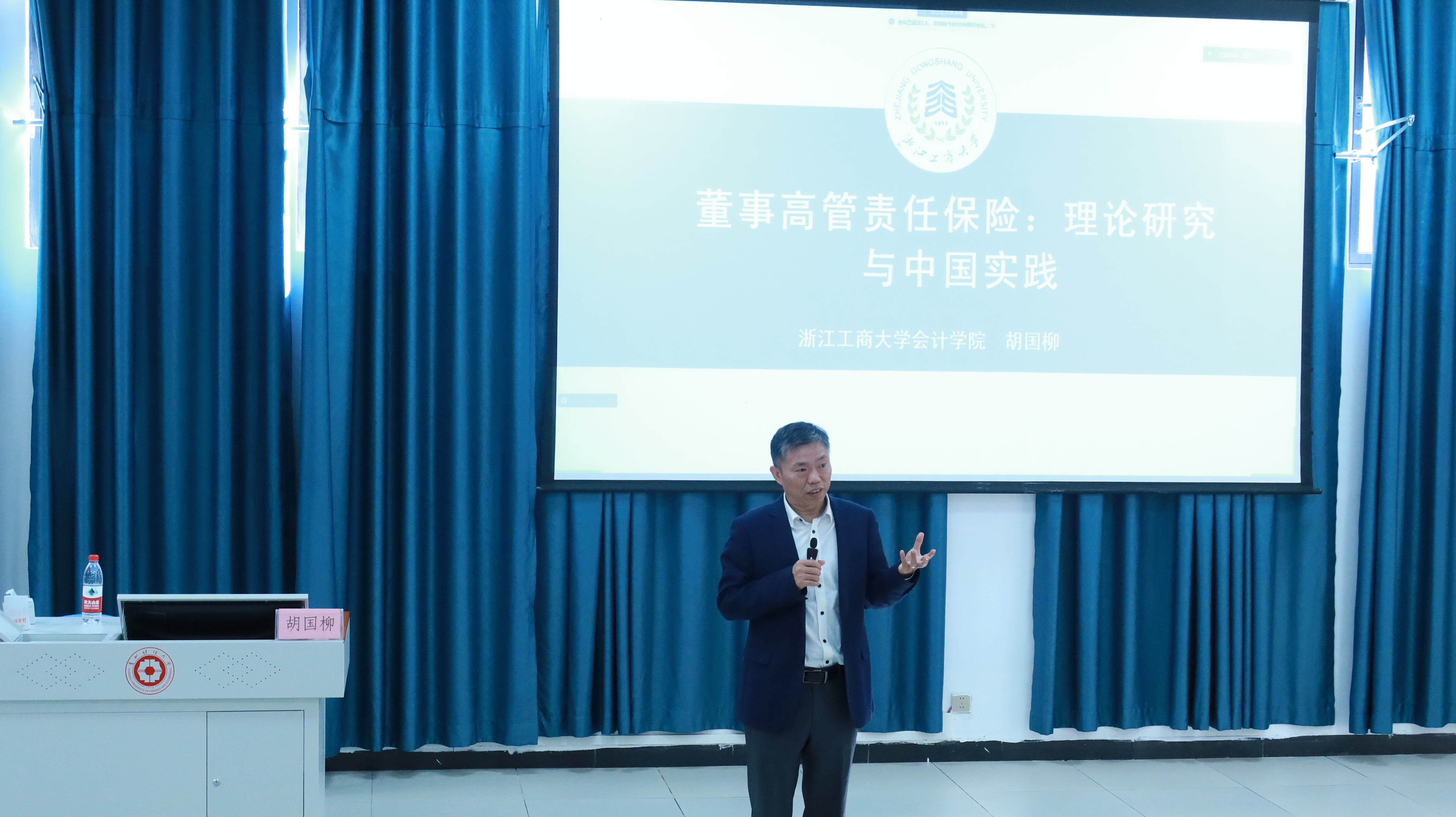 讲座,胡国柳教授分别对中国的董事高管责任保险(D&O保险)的起源、需求动因、法律法规、认购与研究现状、实践应用以及总结与展望等方面分享了许多有价值的见解和研究成果。