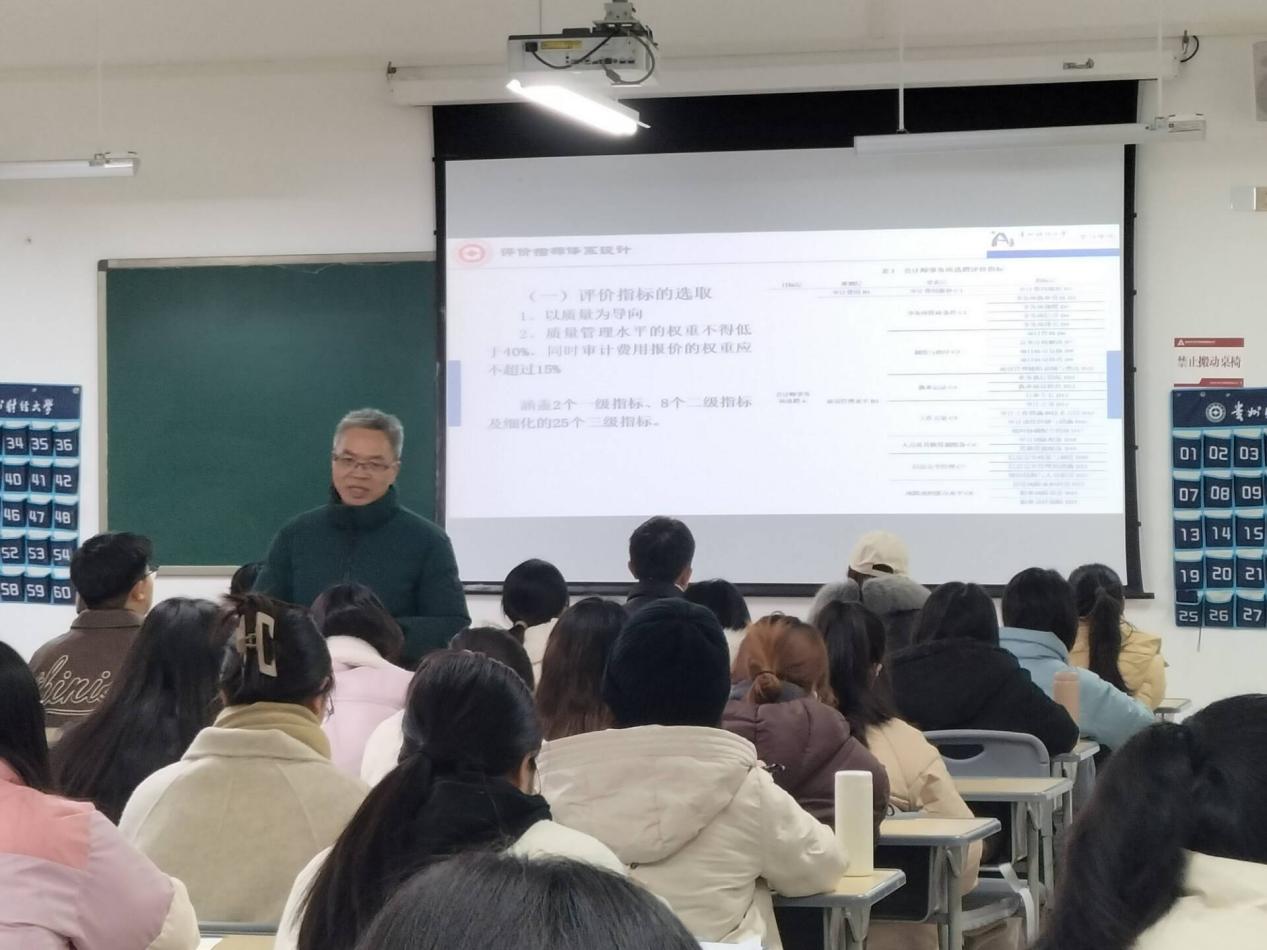 2024年12月17日,beat365亚洲体育官方网站董延安教授为beat365亚洲体育官方网站的本科生和研究生开展了题为“我国会计师事务所选聘评价指标体系设计与应用”的学术讲座。