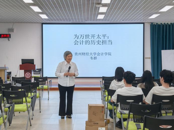 2025年5月9日下午,beat365亚洲体育官方网站邀请退休教师韦群副教授为研究生和本科生同学开展题为“为万世开太平:会计的历史担当”的讲座,100余名同学参加。