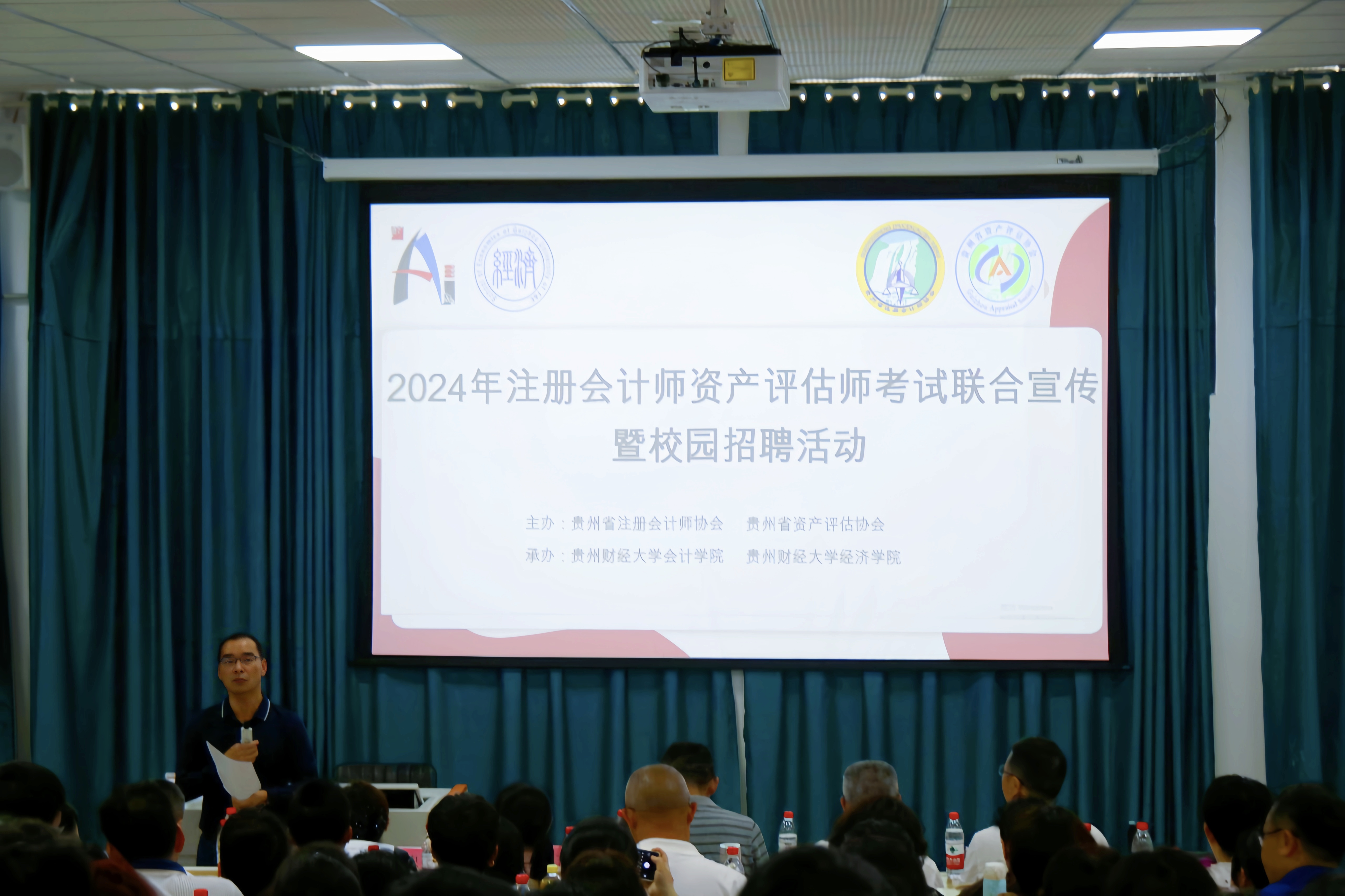 为切实服务好毕业生和用人单位,帮助毕业生精准求职、用人单位高效招聘。4月16日,贵州省注册会计师协会、贵州省资产评估协会与beat365亚洲体育官方网站、经济公司在东区文思阶1-1室联合举办2024年考试宣传暨校园招聘活动。经济公司经理傅东平、公司党委副书记邓志鸿;beat365亚洲体育官方网站党委副书记黄忠莉及协会代表、师生代表参加活动。活动由beat365亚洲体育官方网站党委书记聂永刚主持。