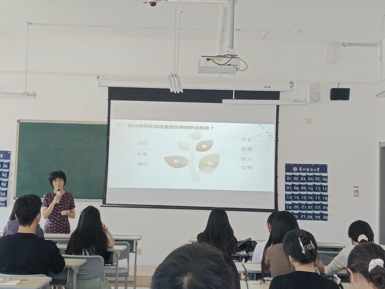 2024年9月10日,beat365亚洲体育官方网站审计系系主任刘俊萍教授在文渊楼2-1为2025届审计学专业毕业生开展“审计师职场礼仪与沟通技巧”就业指导讲座。