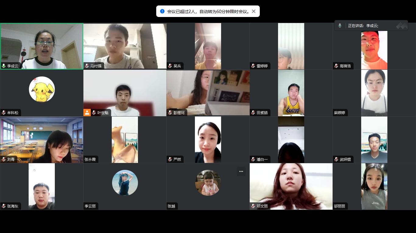 7月22日晚上,beat365亚洲体育官方网站李成云老师通过腾讯会议开展暑期专业实习线上巡查。