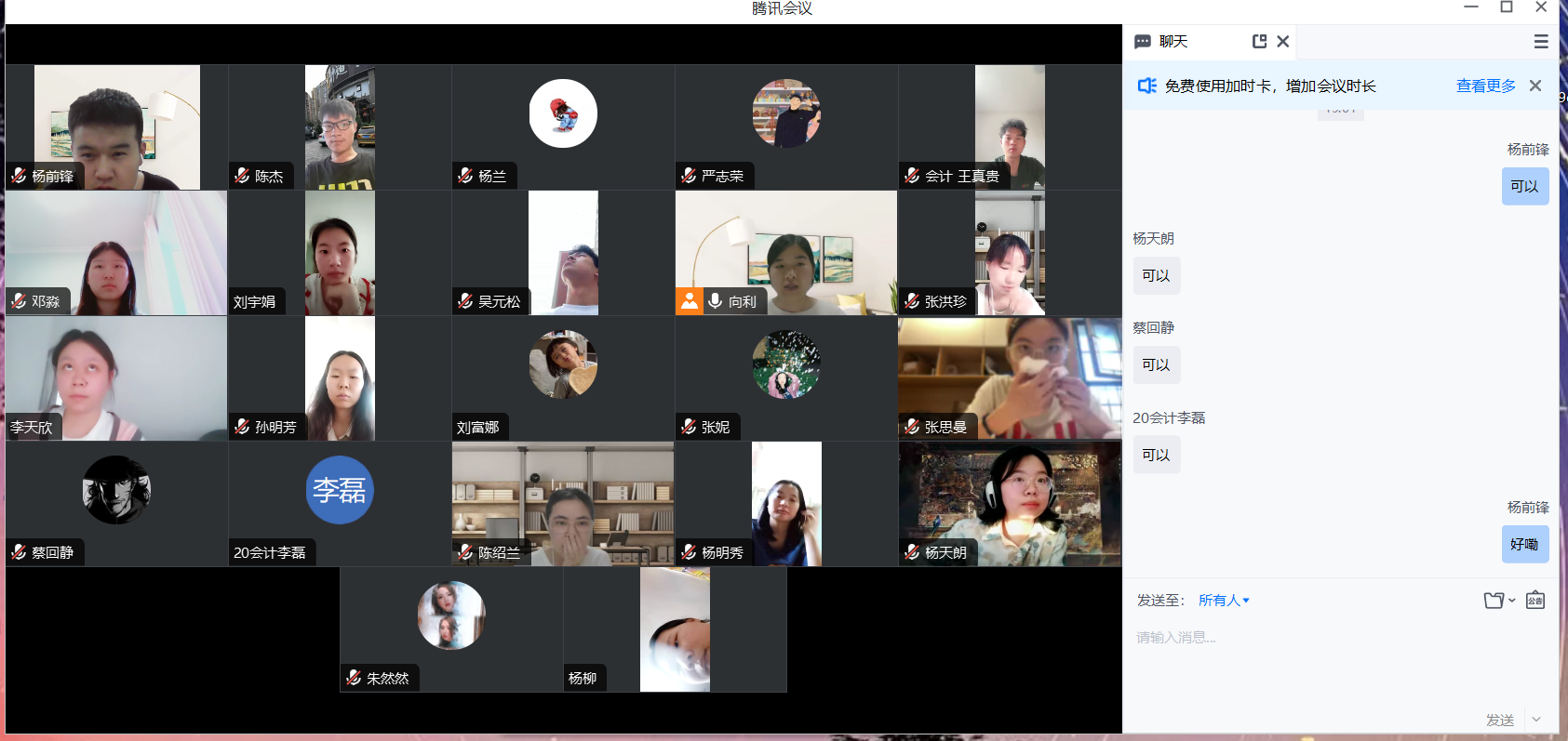 2023年7月16日晚上,会计系向利老师通过腾讯会议对beat365亚洲体育官方网站23名员工开展了暑期专业实习线上教学巡查。