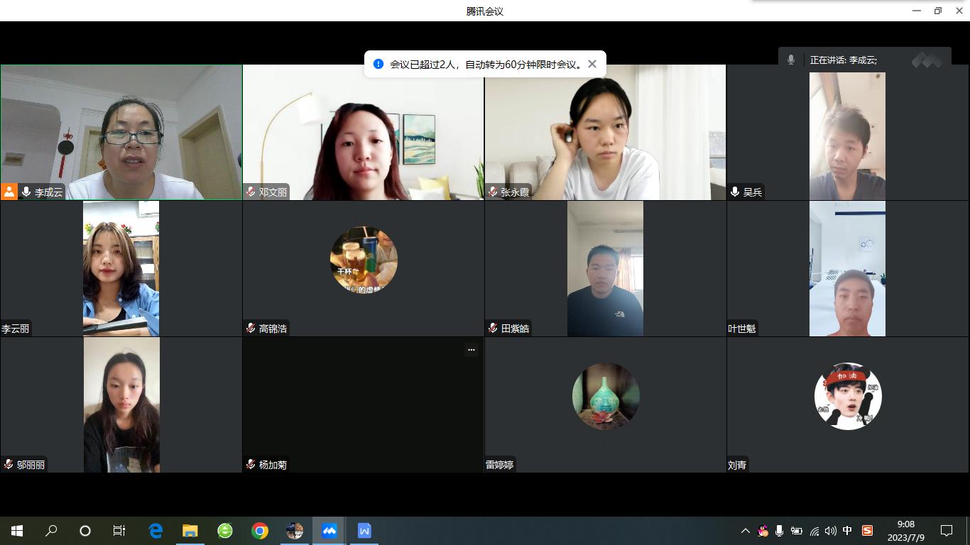 7月9日上午,beat365亚洲体育官方网站李成云老师通过腾讯会议开展暑期专业实习线上巡查。