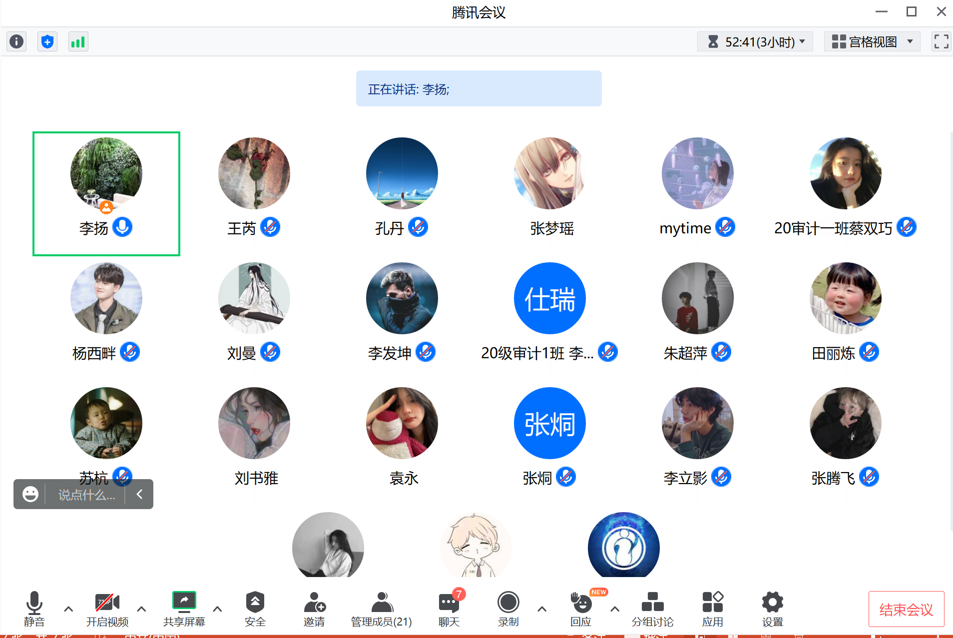 7月8日晚上,审计系李扬老师通过腾讯会议开展了暑期专业实习线上教学巡查。