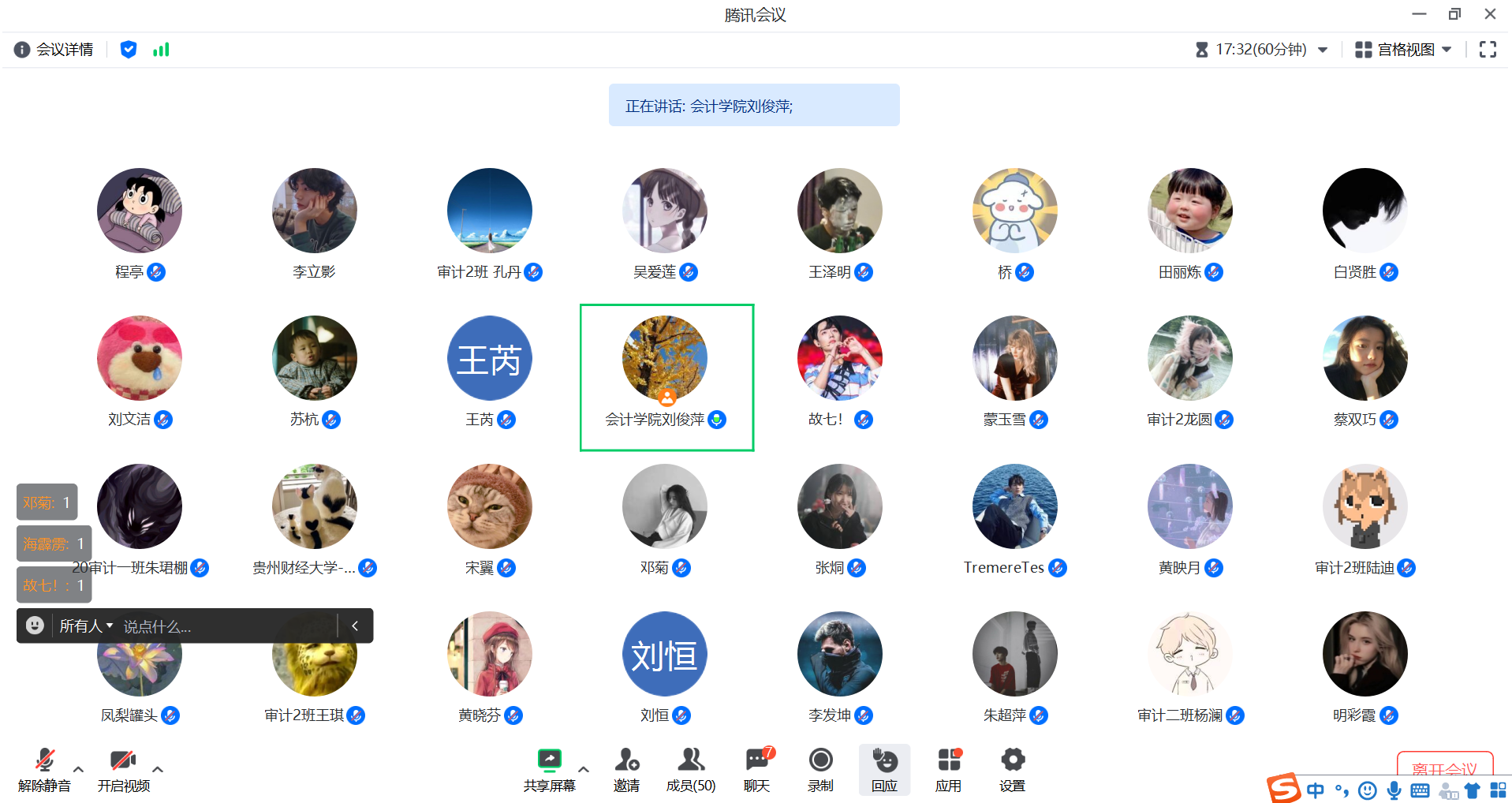 3月2日晚上9点,beat365亚洲体育官方网站审计系通过线上方式召开2020级审计本科生毕业实习动员大会。会议由审计系系主任刘俊萍教授主持,指导教师崔云、程亭、黄晓芬及全体2020级审计本科生参加。