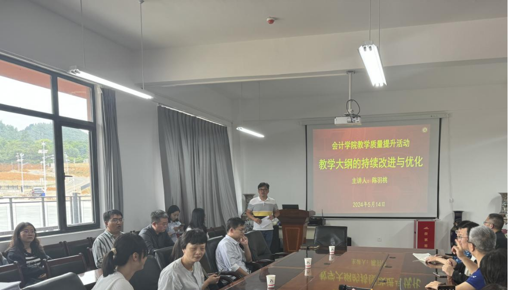 会计系副主任陈羽桃副教授做了题为《教学大纲的持续改进与优化》的宣讲,围绕教学大纲修订的理念、教学大纲持续改进的基本原则、教学大纲的主要内容等进行了细致的讲解。她特别指出:教学应蕴含课程思政教学目标的课程考核评价方式,可通过小组讨论、案例研讨等课堂活动,加强对课程思政教学效果的过程性评价;围绕立德树人根本任务,完善教学内容,实现从专业知识点的讲解升华到教育引导员工形成正确的世界观、人生观、价值观。