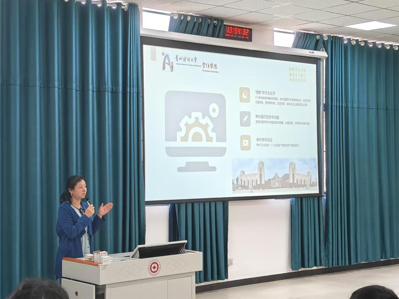 邱静从学术立校、学业提升等方面展开详细陈述。她希望同学们能够多参加公司举办的各类学术讲座,注重培养自己的学术能力,制定明确的学习计划,为学业提升打好基础。