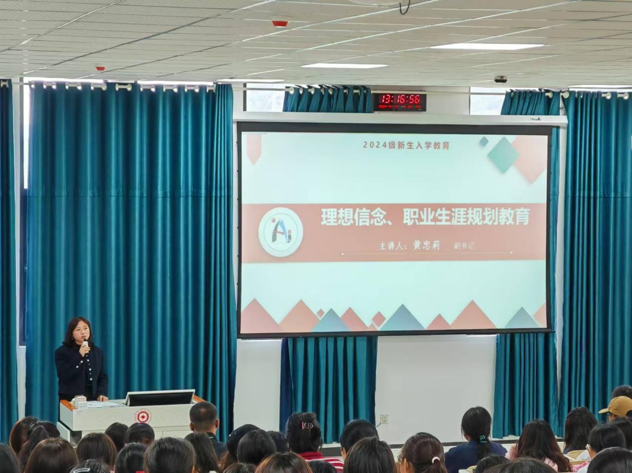 黄忠莉围绕理想信念和职业生涯规划展开讲解。她指出诚信是立身之本,要具备职业道德,学会尊重他人,学会理解包容。 她希望同学们要以修身为核心提升专业知识,扎实掌握各项技能。